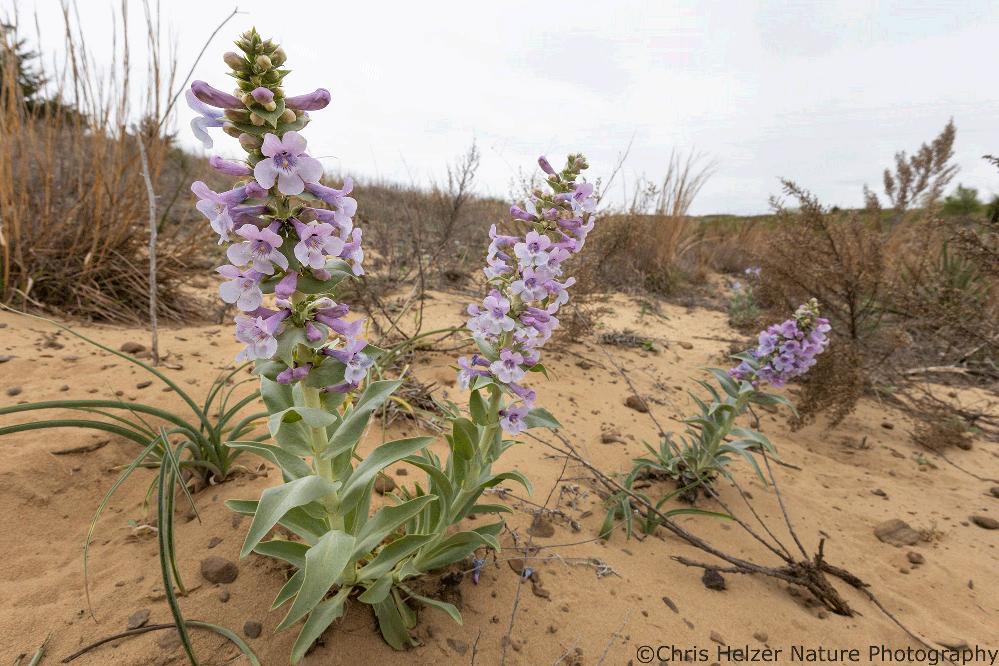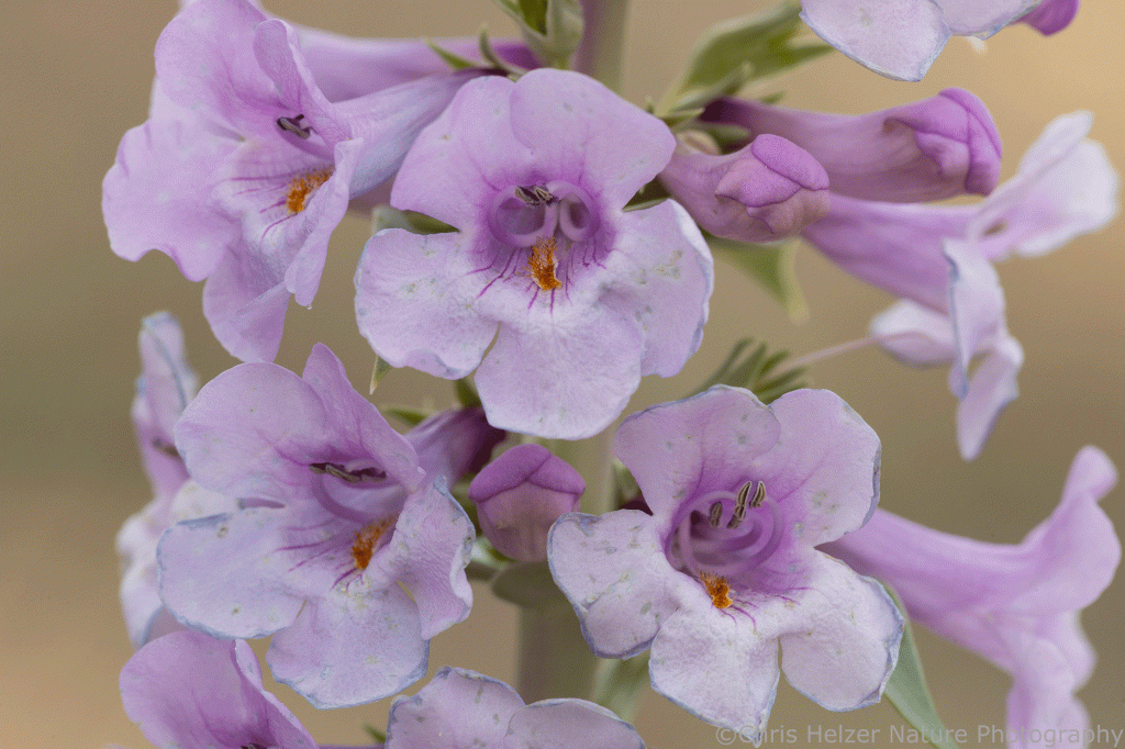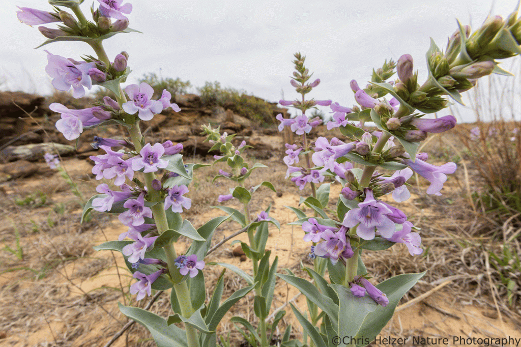 Here’s a close-up of the penstemon flowers. While the leaves of the plant look similar to shell-leaf penstemon (Penstemon grandiflorus), the flowers are very different.