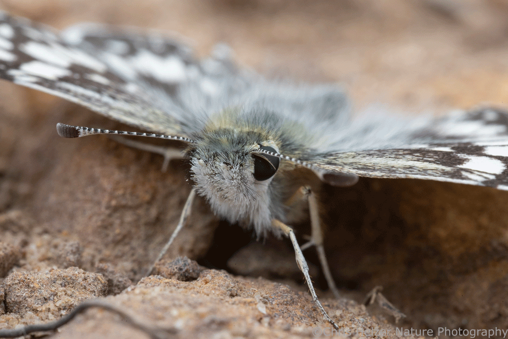 A common checkered skipper trying to capture some radiant heat on a cool, cloudy day.