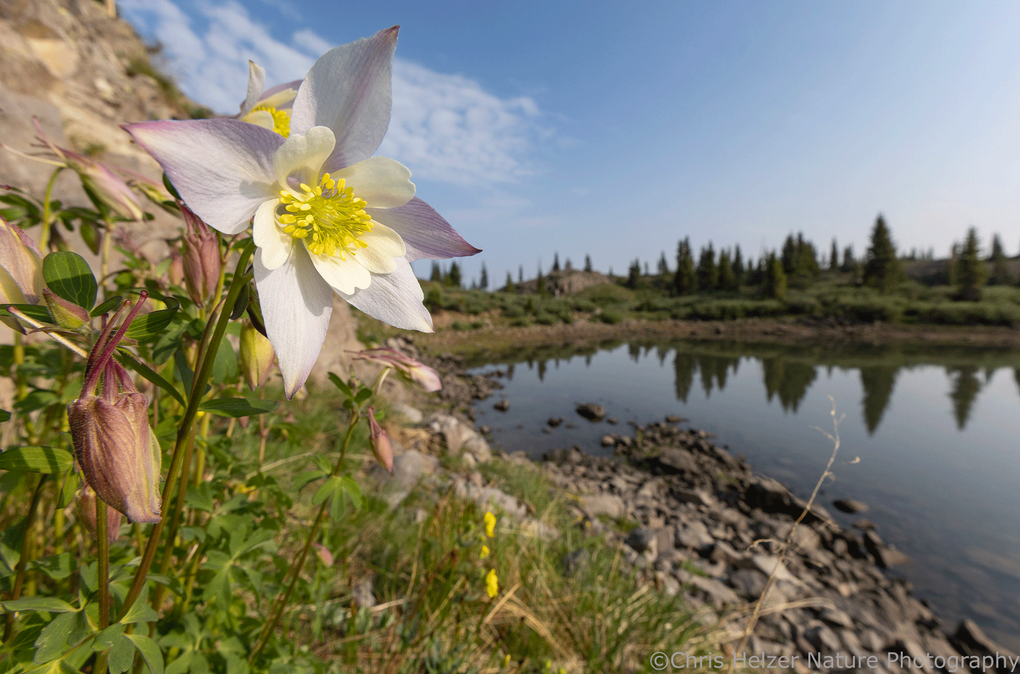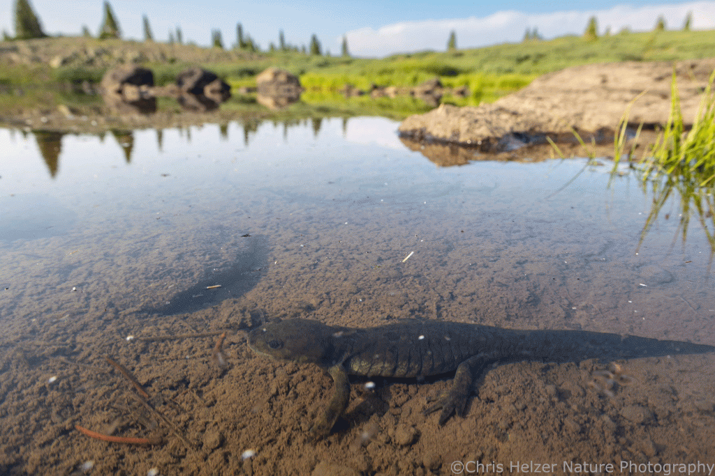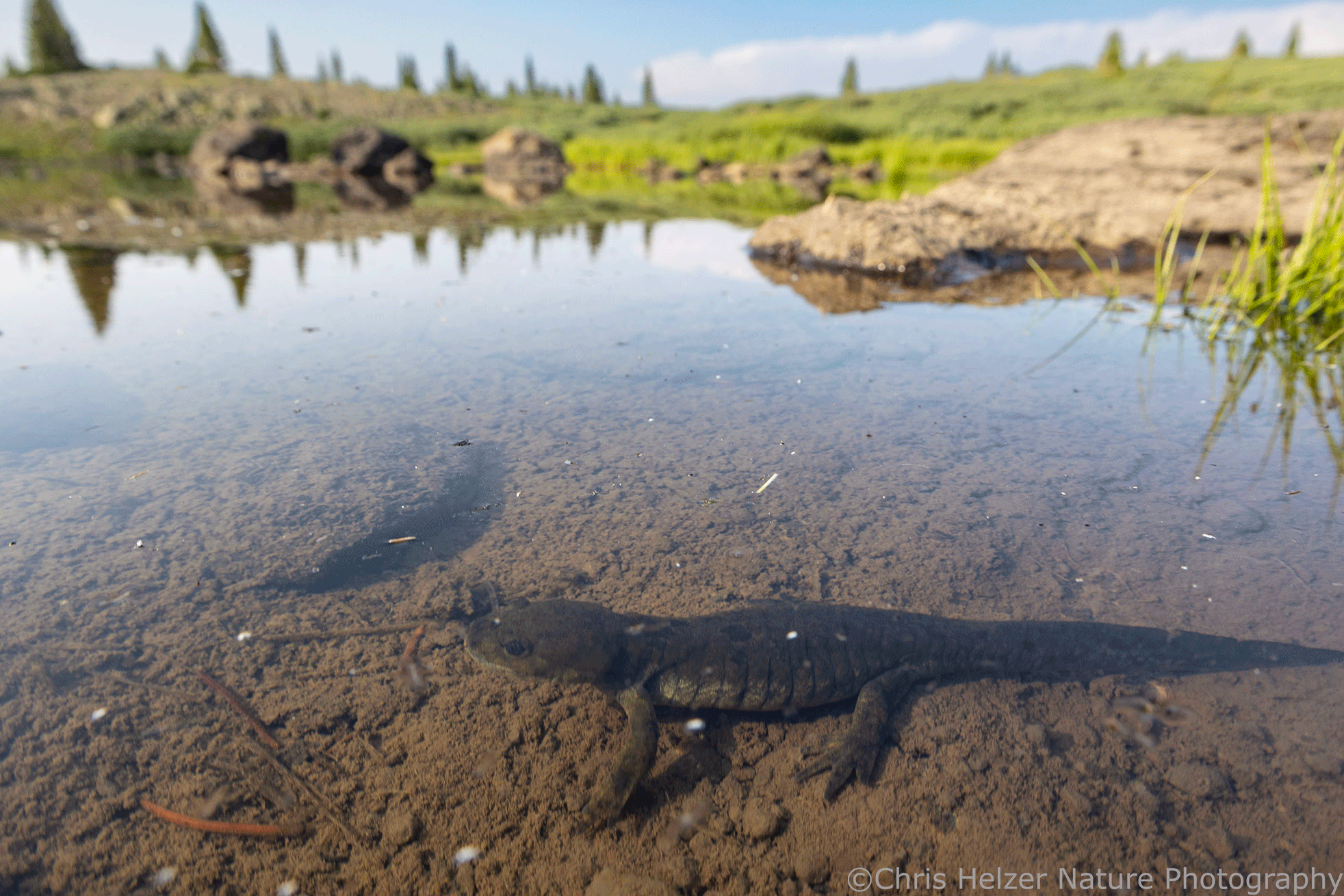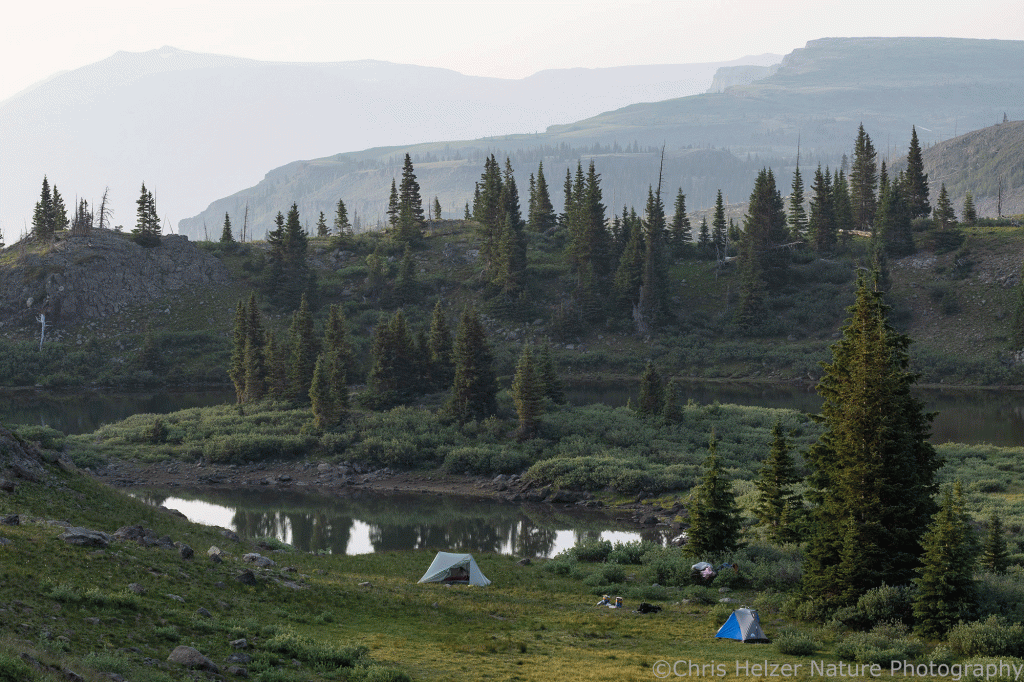 Last year, I spent several very pleasant days exploring the Flat Tops Wilderness.  I backpacked up onto the big plateau and found myself a nice campsite, nestled in a small valley near a couple little lakes.  To my delight, the little lakes were full of salamanders, which, along with the marmots, pika, wildflowers, grassland communities, and topography, gave me plenty to explore and photograph.  Oh, there were lots of mosquitoes, too, but not in a way that ruined the experience.