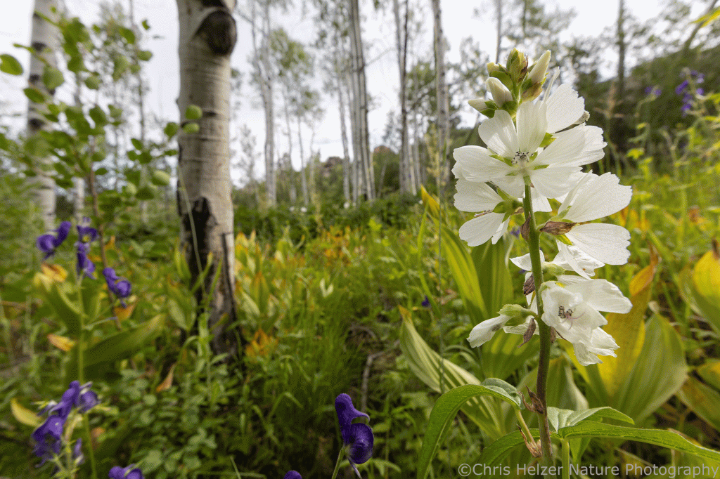Wildflowers and aspen in the Sarvis Creek Wilderness.