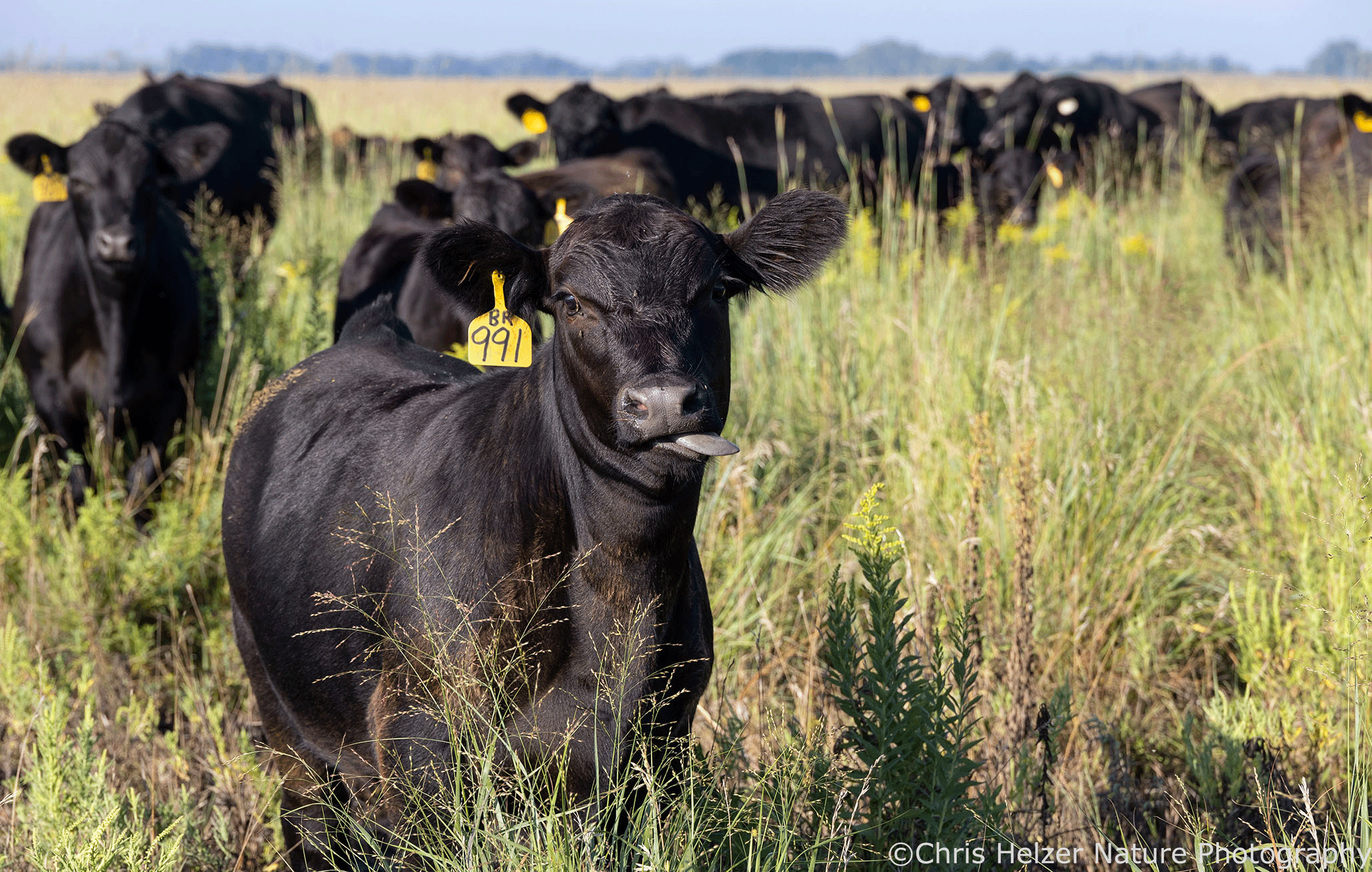 Just as I was ready to hop in the truck to head home, the cows came up close to say hi. I took a photo of a calf with its colleagues behind it. I took several rapid-fire shots. Just as I started, it stuck its tongue out and made me laugh. I don’t think it was being goofy on purpose, of course, but it sure seemed similar to a kid trying to ruin family picture day!