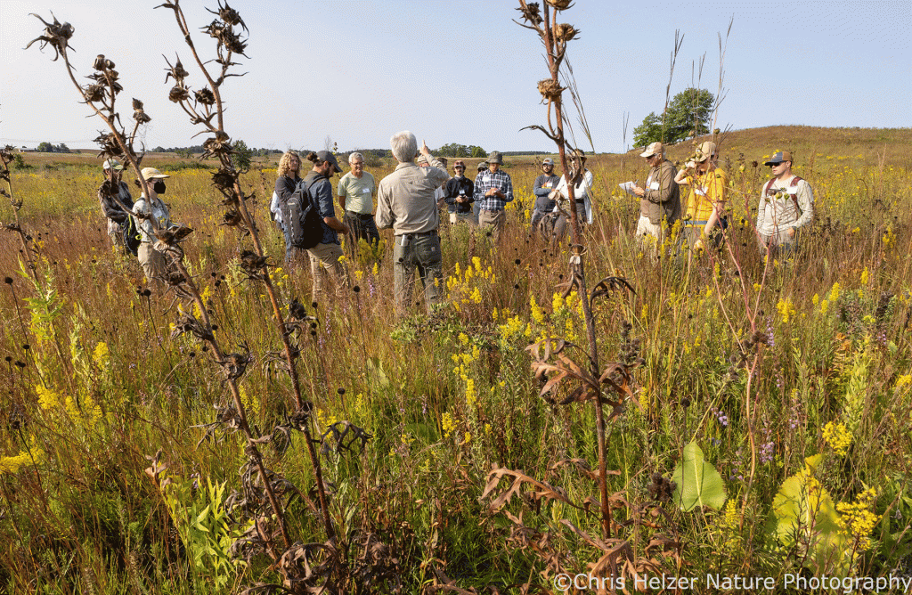 During this year’s workshop, we spent a day and a half exploring (and marveling at) different parts of Nachusa Grasslands. We talked about their strategies for seed harvest, cleaning, and planting, invasive plant control, brush management, and the research and monitoring efforts that help them gauge success. We also went on a long evening tour in search of their bison herd.
