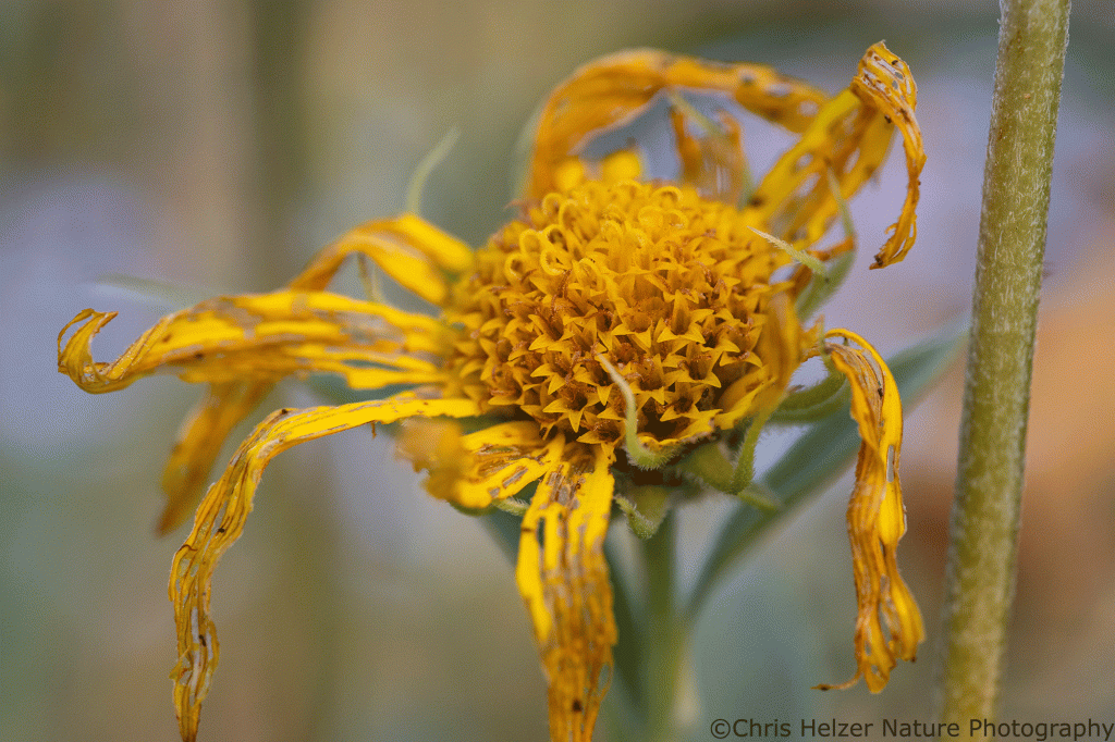 Invertebrate activity has dropped off significantly in the last few weeks. There’s always something moving around during my visits, but I’m not seeing the kind of frenetic activity I experienced when the sunflowers were still yellow and morning temperatures were warmer. That’s ok. It gives me time to do more thorough searches and to spend a little more time with each little creature I find. You’ll see the results of that in part 2 of this post.