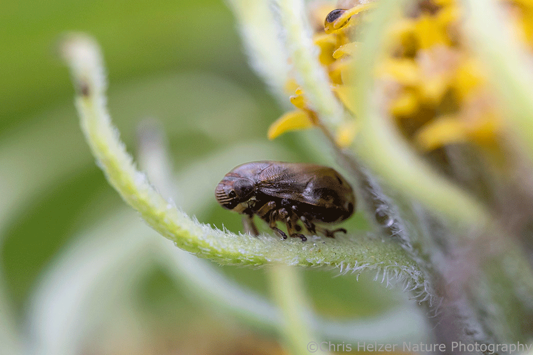 The insect shown below is an adult spittle bug. Specifically, it is the sunflower spittlebug (Clastoptera xanthocephala). I didn’t know that when I took the photo. Bugguide.net experts identified it for me. Now that I know that, of course, I can be pretty confident that it is the species that created the spittle bug bubble clusters I saw on two different Maximilian sunflower plants within my plot.
