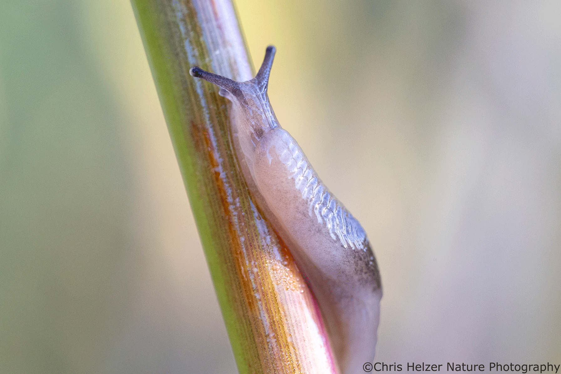 One morning in late September, I got my first mollusk of the project (including both 2018 and 2024. A slug was slowly (of course, right?) moving around on big bluestem, about a foot off the ground. I photographed it right away, but the light wasn’t great. A couple minutes later, I noticed the light was now hitting that area, so I tried to find the slug again. No luck. I looked for several minutes but couldn’t find any trace of it. I had to laugh at my misplaced confidence that the slug wouldn’t move quickly enough to evade me in just a couple minutes. Shows what I know.