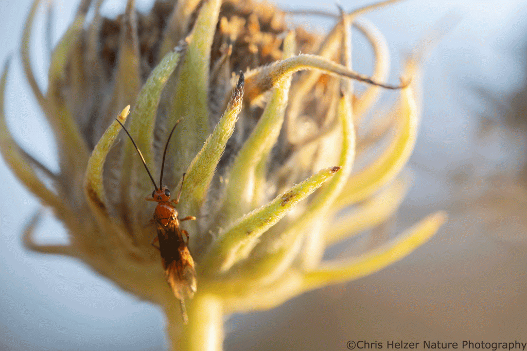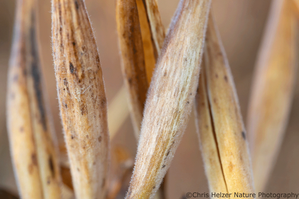 Seed heads were a big feature of my fall photography in the square meter plot. The shapes and textures of those seed heads were fun to play with, especially when silhouetted against morning and evening skies. They were also the source of a lot of insect activity as bugs and grasshoppers (and others) fed on the seeds.