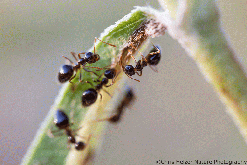I was surprised to still see ants swarming around on sunflowers in October. I assume they were still finding extrafloral nectar, even as the plants were drying down.
