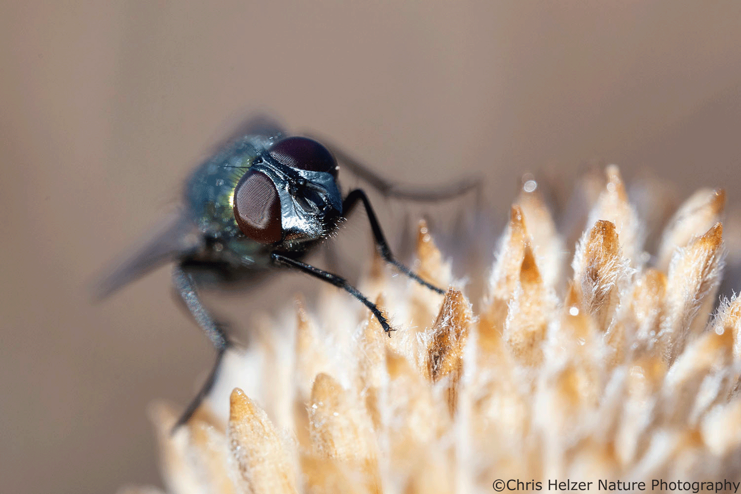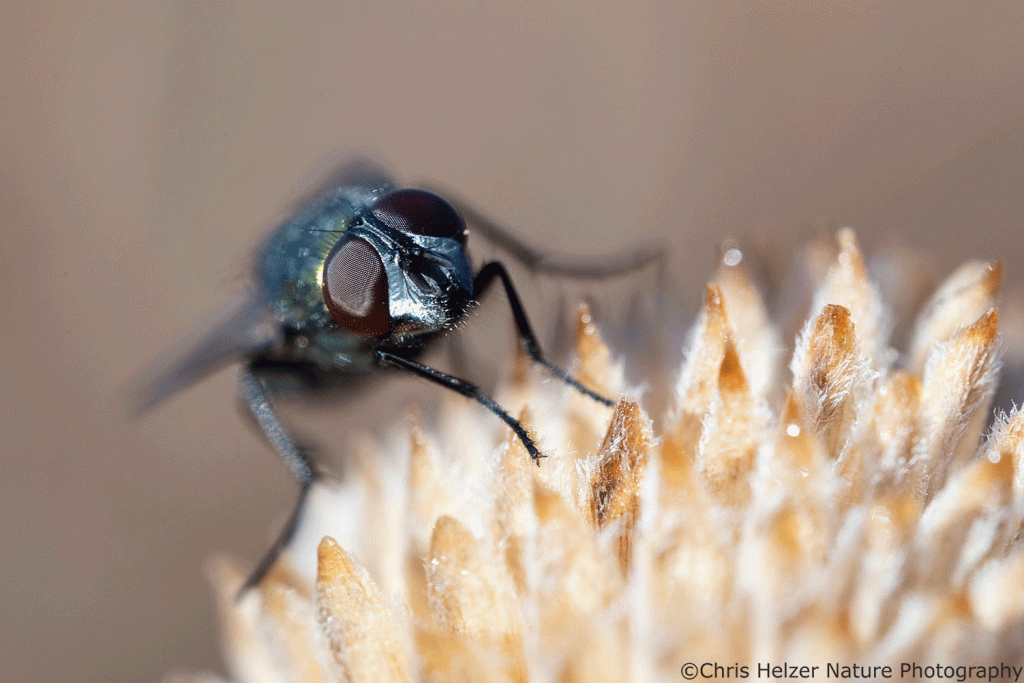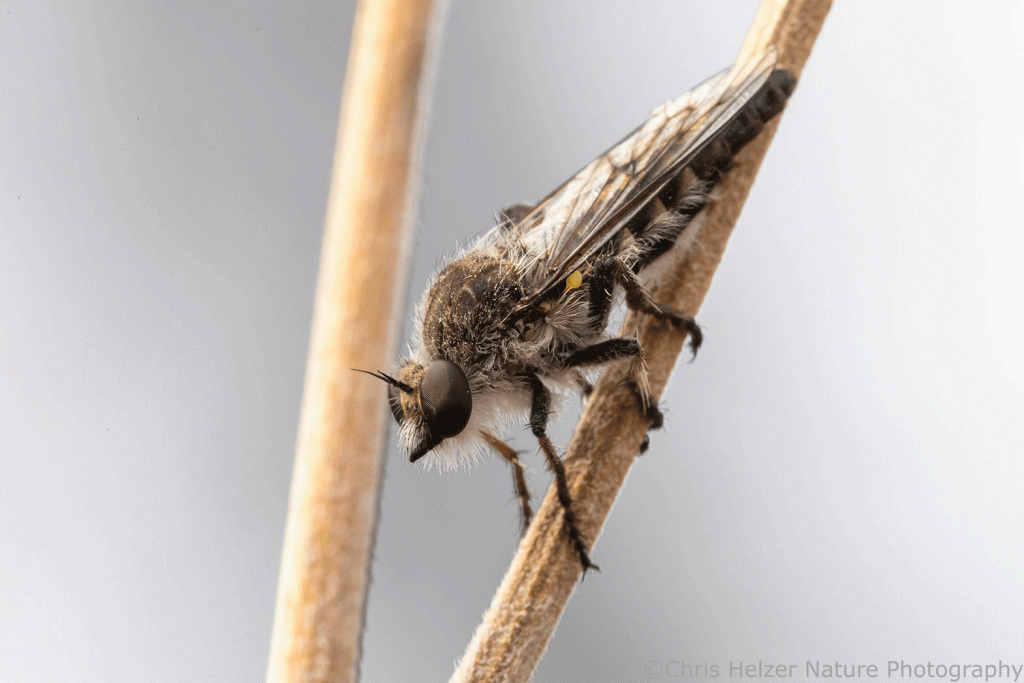 Flies must be some of the hardiest creatures on earth. As other insects stopped showing up this fall, flies and a few bugs were the stalwarts. I still can’t tell a lot of fly species apart from each other, so I’m hoping to get some help figuring out how many species I’ve actually photographed this year. I definitely found at least a couple new ones this fall, though, including my one and only robber fly of the project.