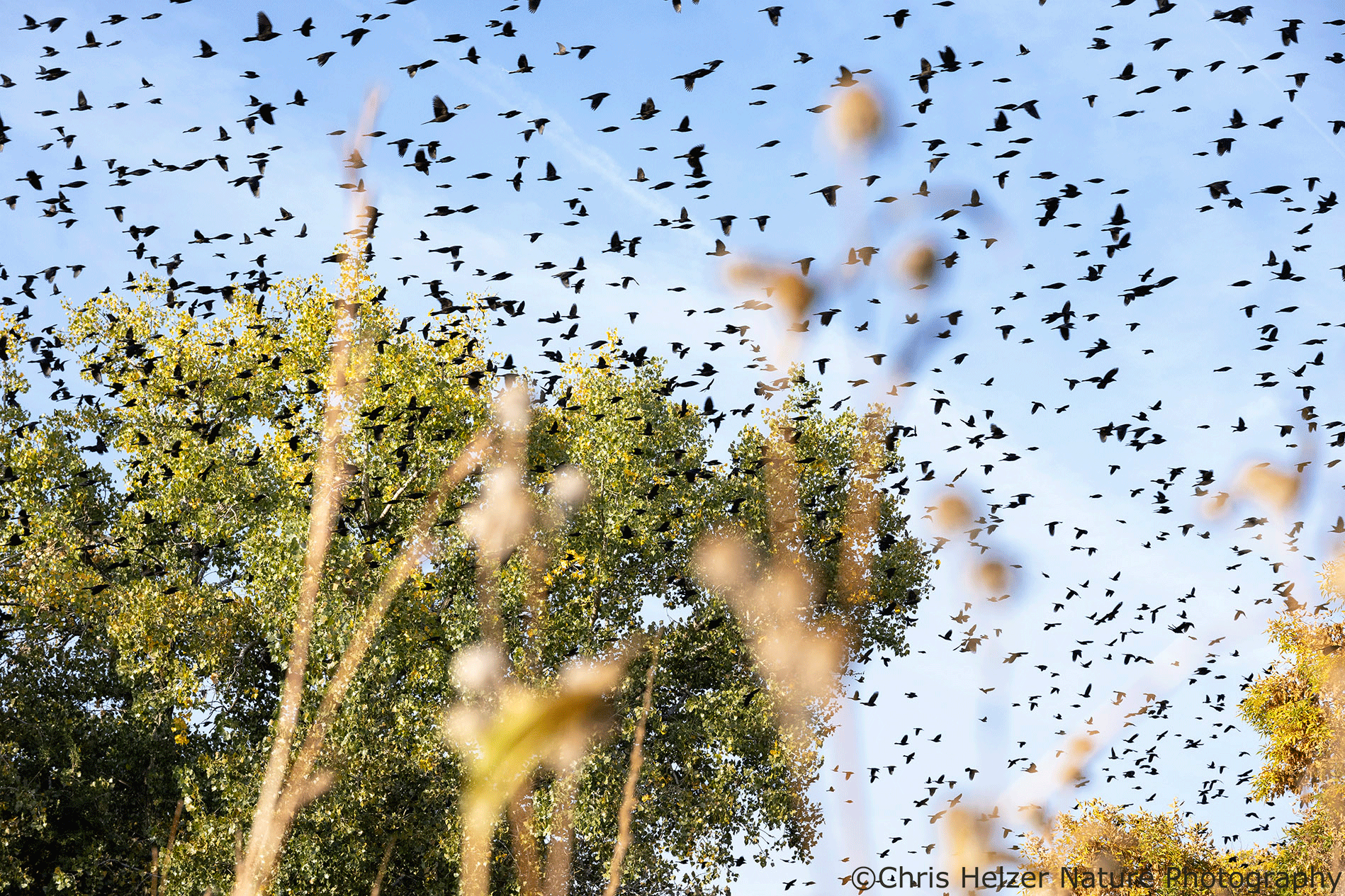 This huge flock of grackles (and likely other species) passed right overhead several times on October 12.