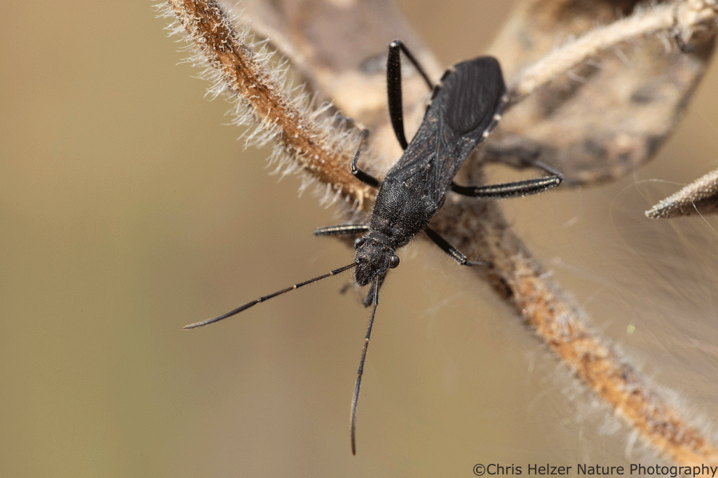This broad-headed bug (Alydus sp.) showed up on October 12. This insect apparently likes to feed on both the leaves and seeds of legumes. It didn’t eat anything while I watched it, so I can’t confirm or deny that.