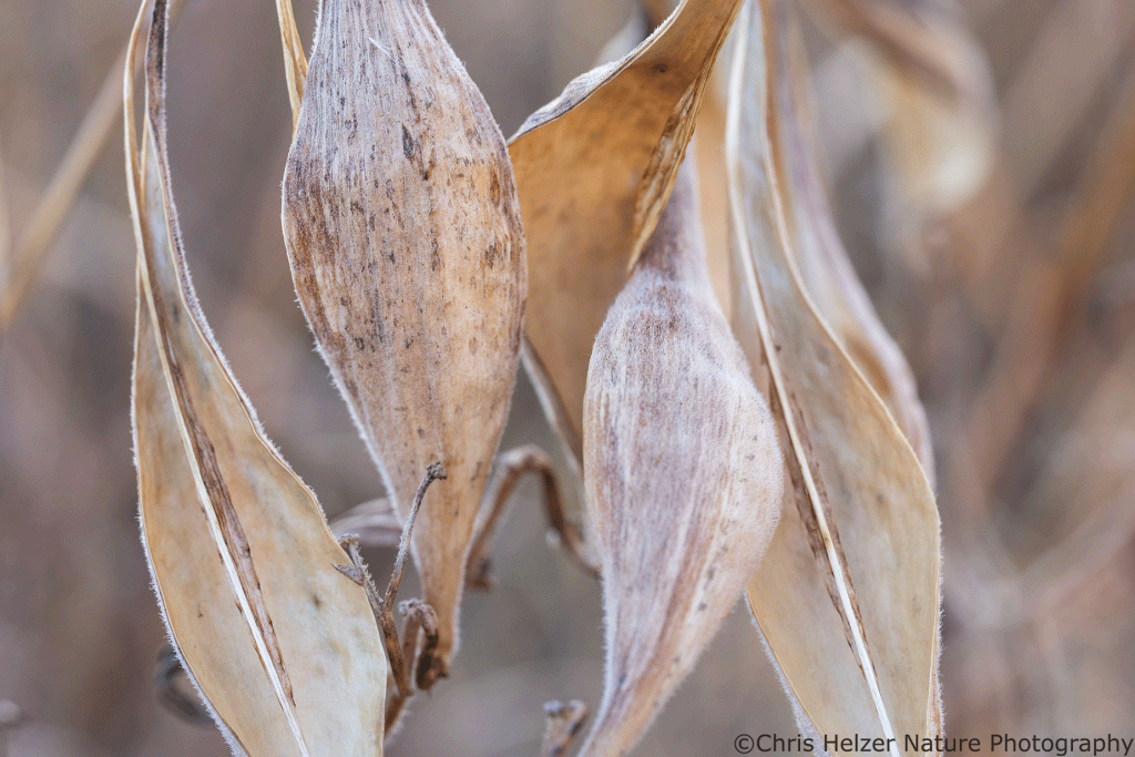 Autumn brought the typical fall colors of yellows, oranges, and browns. People unfamiliar with prairies might not think of grasslands when they imagine fall colors. They should. Maybe there aren’t sugar maples in prairies, but there are plenty of color changes to admire. The common milkweed plant in the corner of my plot never bloomed this year, but provided some nice late season color. Similarly, lead plant, despite its tiny leaflets, was really pretty when it changed from gray-green to orange.