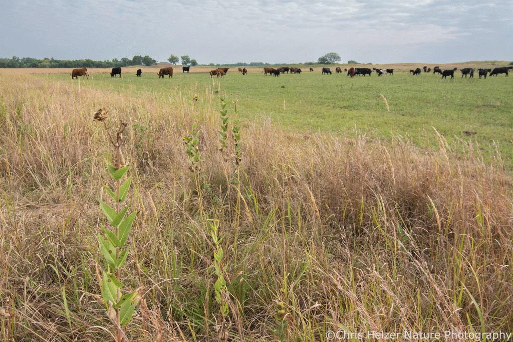 Grazing can be used the same way, except that there’s a lot more flexibility in how it’s applied. Patch-burn grazing is a terrific way to combine fire and grazing to create heterogeneity across time and space. I’ve written about the ‘open gate rotational grazing’ approach we’ve been experimenting with. That’s another potential option. In both those examples, each part of a prairie is grazed for a full season or more and then allowed to rest for a couple years. The grazing and rest cycles are staggered across the site so there are always patches in each stage of that cycle available for the plants and animals that thrive best in those conditions.