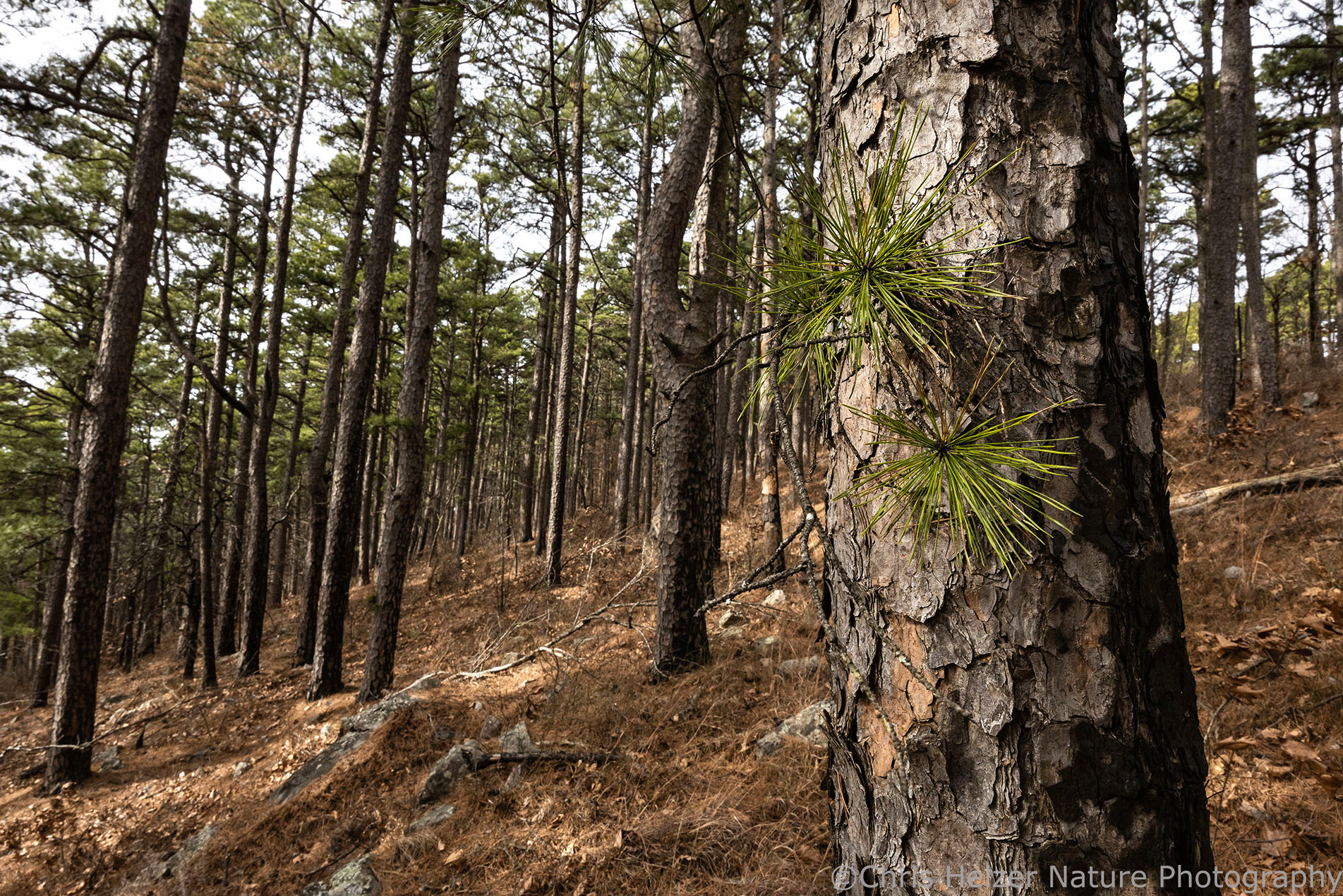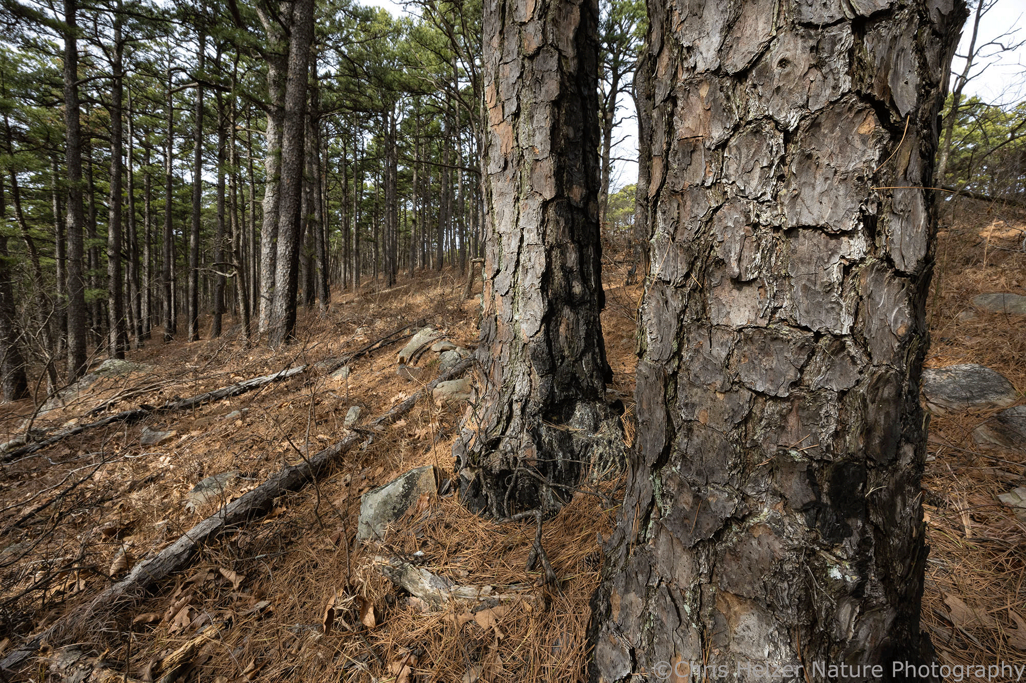 Shortleaf pines and rocks.