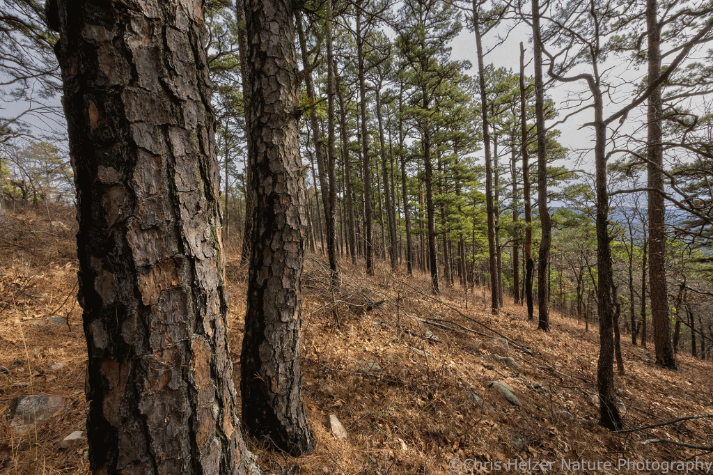 More shortleaf pines on steep slopes.
