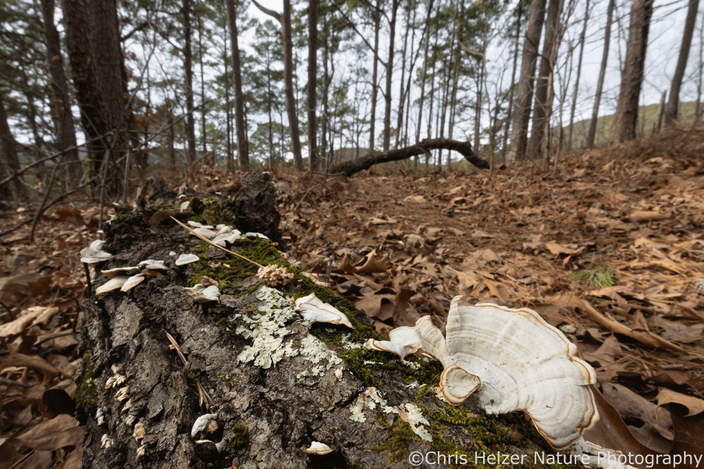 There was a lot of fungus growing on downed logs and dead trees. It all looked the same to me, but my expertise on fungus wouldn’t fill a thimble, so who knows? I used it as foreground for photos and didn’t sweat too much about identification.