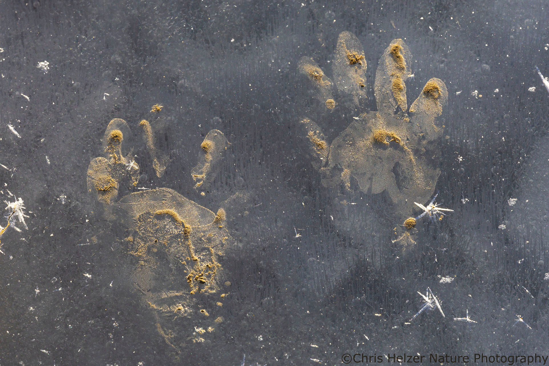 It was good to see I wasn’t the only lunatic walking around on the ice. Several raccoons had also been around, based on the numerous tracks I found.