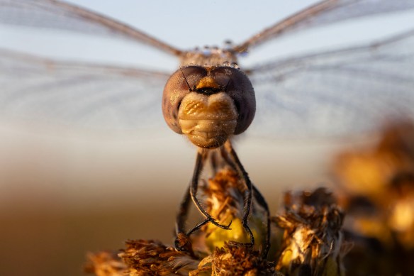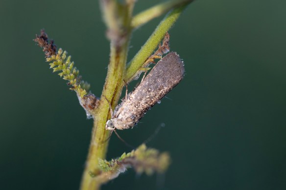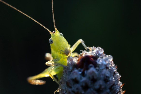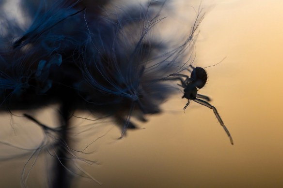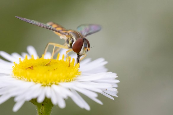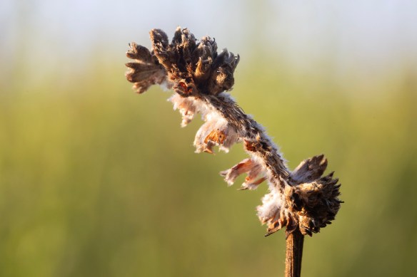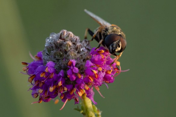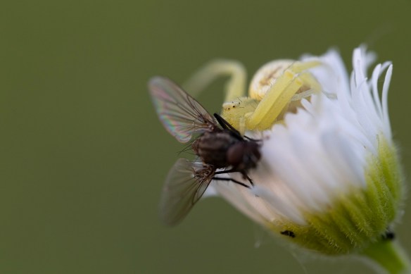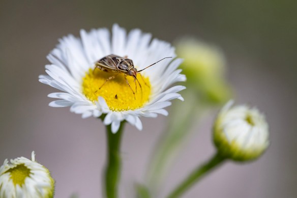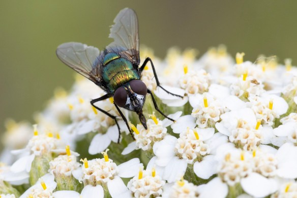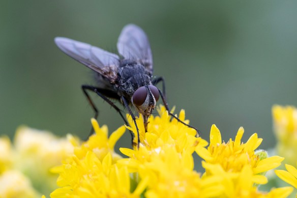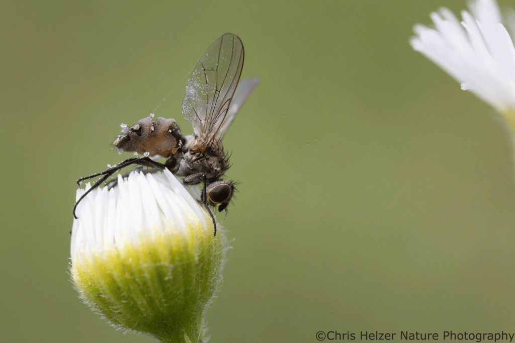This fly was killed by a fungus that made it crawl to the top of this fleabane plant before dying. Read more about that here.
