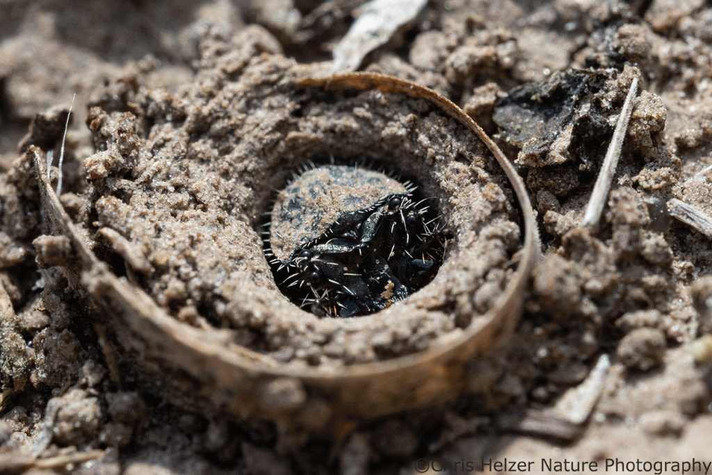 The bare ground created by last year’s grazing made important habitat for lots of creatures, including this tiger beetle larva hunting at the top of its burrow.
