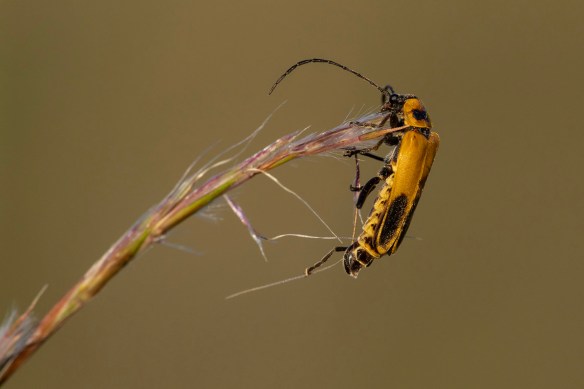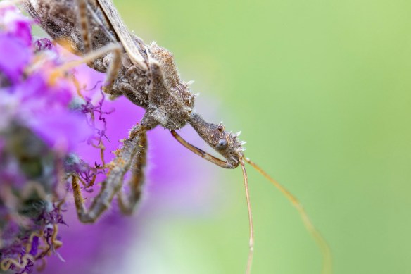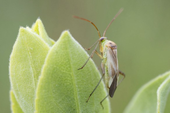 This narrow stink bug was well-camouflaged on its favorite food plant – sideoats grama.