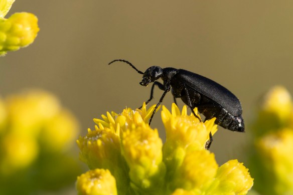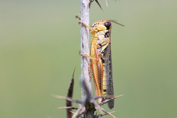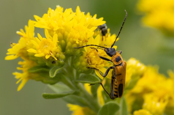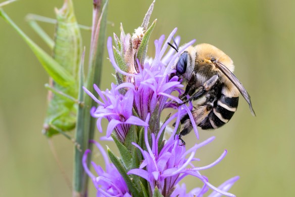 Access to bare ground is crucial for many animals, including a lot of ground nesting bee species, bandwing grasshoppers, various invertebrate predators, and lots of others. Some of those need areas nearly free of any vegetation, but many just need places where the soil isn’t covered by a thick layer of thatch. Last year’s grazing removed most of the plant material from this part of the pasture and also tempered the growth of dominant grasses. The result was that there was lots of great habitat for species that need both bare soil and abundant sunlight.