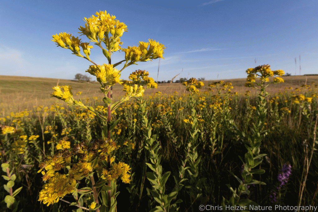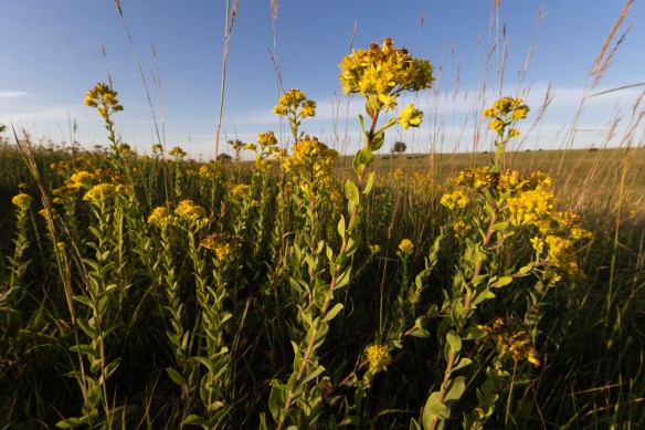 Stiff goldenrod was abundant and in full color on September 13. Again, note the sparsity and short height of the grasses and the space between plants.