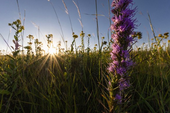 A big patch of purple prairie clover on June 27. Note how short the surrounding grasses are – they’re low on energy because of the previous year’s grazing. They’ll have recovered that energy by next year.