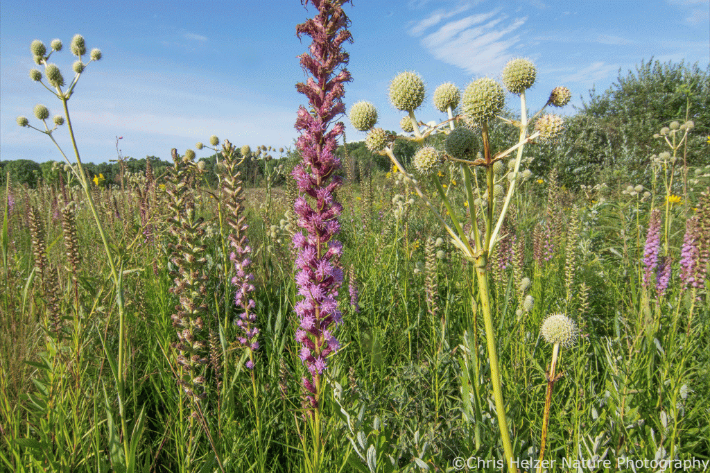 A diverse mix of plant species also facilitates a lot of interactions and relationships between prairie species. That includes interplay between plant species themselves, as well as between plants and other taxonomic groups, including animals, fungi, and more.