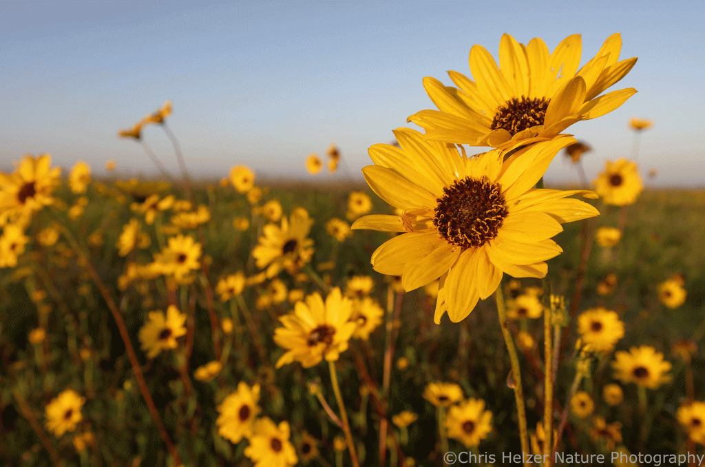 However, you’ll often see big changes after the first few dry years, fires, grazing bouts, or other events that put a little pressure on plant survival. That’s when the community really starts to take shape. Populations of individual plant species either grow or shrink, depending on how well matched they are to local conditions. This is when we often see stiff sunflower disappear from sandy wetland edges, but expand in number on higher ridges. Meanwhile, sawtooth sunflower expands its populations along wetland edges and drops out of higher sites.