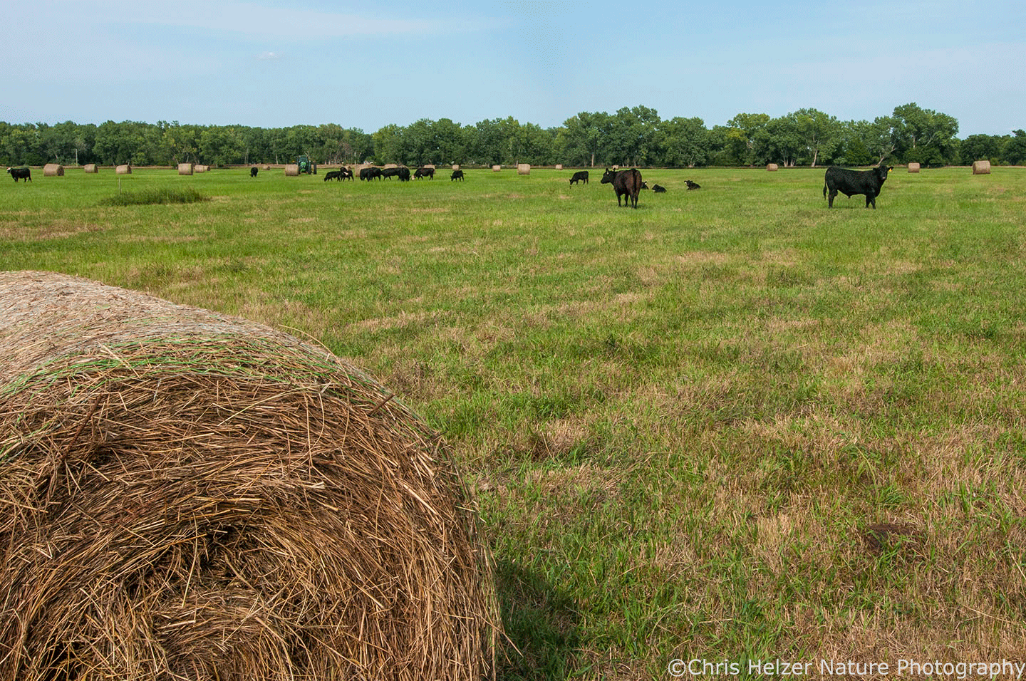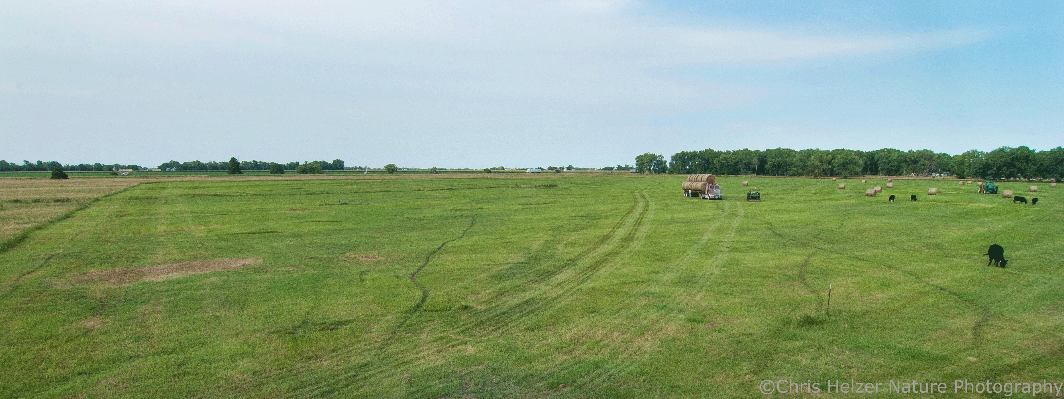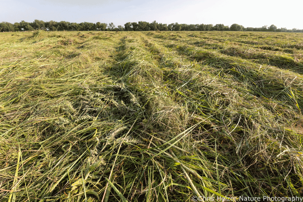 An additional method we’ve used over the years, and (finally) the topic of this post, is something we call patch-hay grazing. It’s not very complicated. It’s really just patch-burn grazing, but instead of burning, we cut hay where we want to focus grazing pressure. As with patch-burn grazing, the key is to create an area where fresh, nutritious grass growth, without any standing dead vegetation, lures grazers in and encourages them to spend most of their grazing time in that patch.