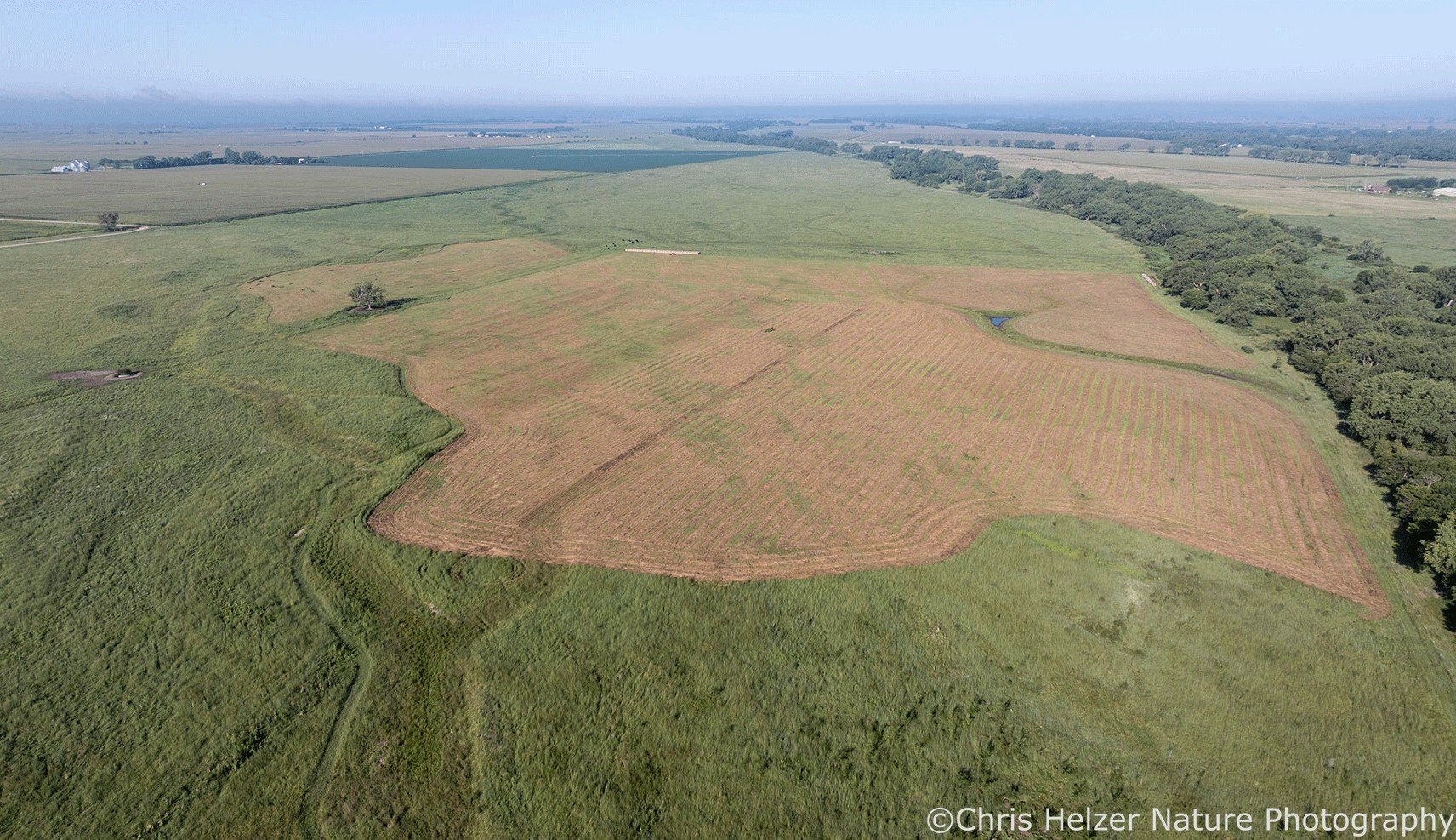 There are lots of effective ways to create this kind of shifting mosaic and support a strong diversity of plants and animals (and other organisms). Foundationally, it just requires managers to split a prairie into multiple patches each year and make sure that each patch is both different from its neighbors and different than it was the previous year. Mowing, burning, and grazing are all ways to manipulate habitat structure and growing conditions.