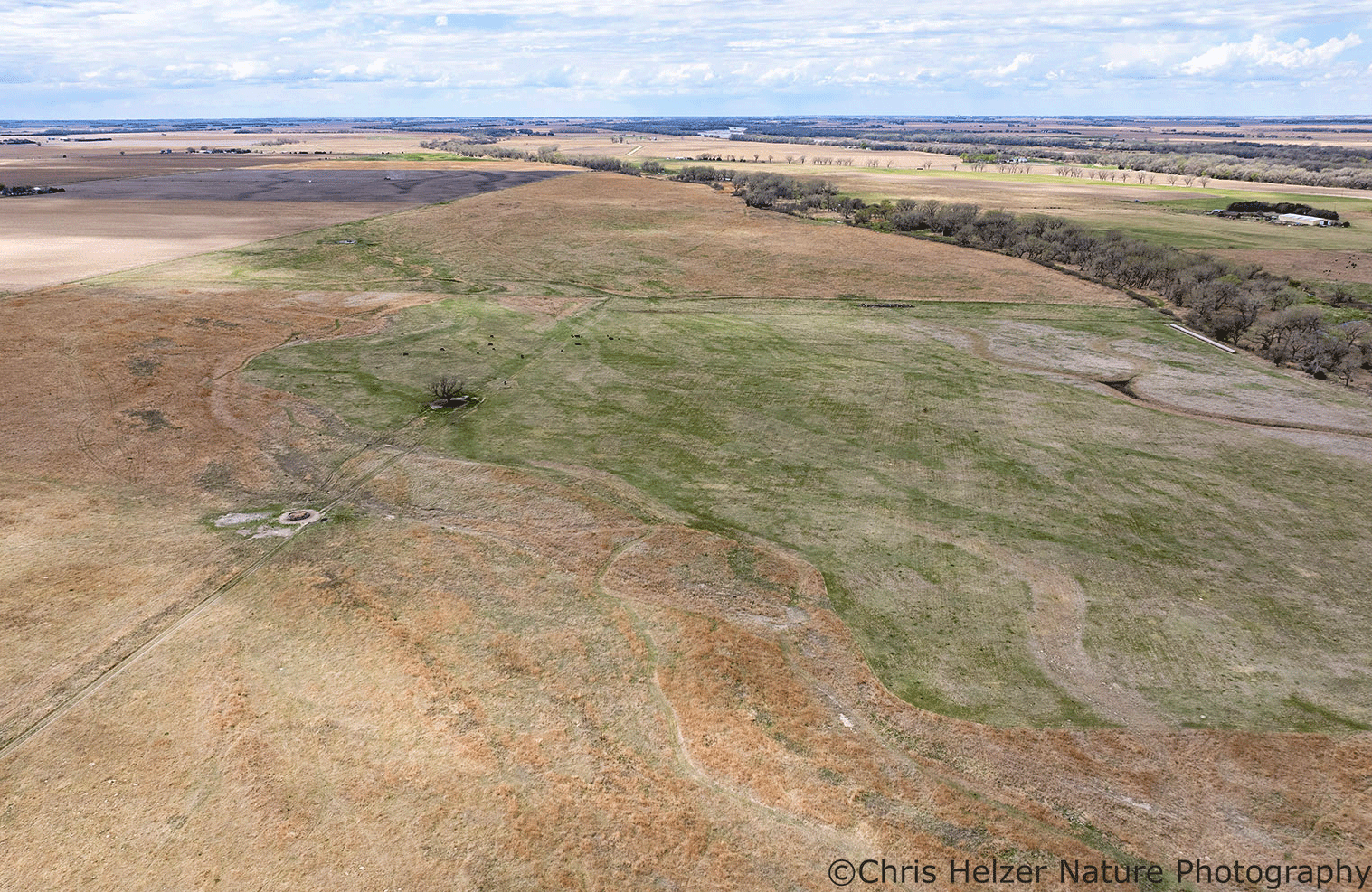 If both fire and grazing are options for you, patch-burn grazing can be a terrific way to create a shifting mosaic. Within a patch-burn grazed prairie, large grazing animals (e.g., bison or cattle) focus their grazing in recently-burned areas much more than unburned areas. Managers burn a new patch each year to move the grazing pressure and rest around the grassland. We usually burn around 1/3 to 1/4 of the total site, depending upon how many years it usually takes for burned/grazed areas to fully recover. In drier and/or less productive sites, recovery from being burned and then grazed all season takes longer, so we burn a smaller percentage of the total area each year. Within that basic framework, there are lots of options regarding stocking rate, timing and duration of the grazing period, and more – allowing you to tailor the general approach to your specific objectives.