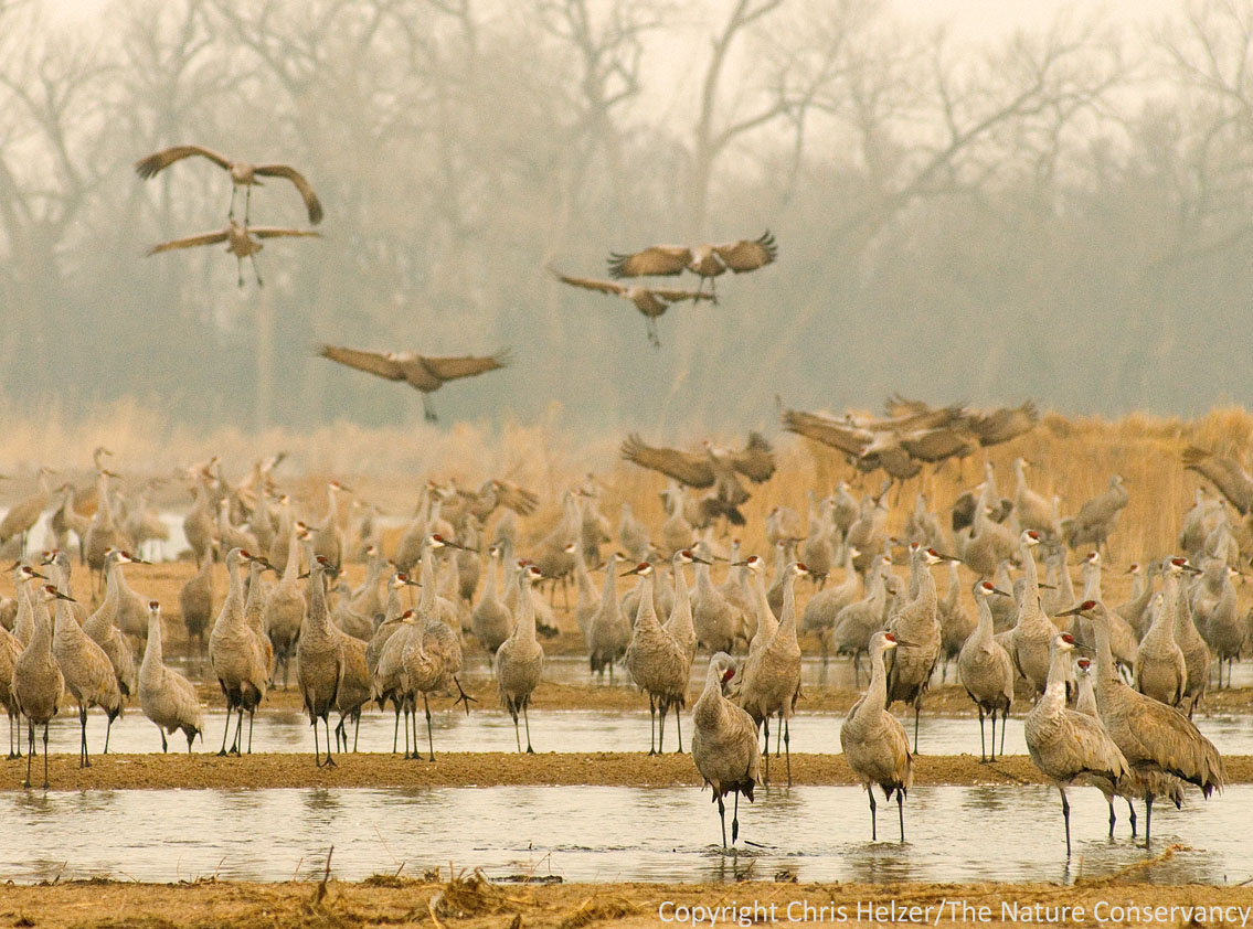 One big perk of working in the Platte River Prairies is that we get to be witnesses to the annual migration of sandhill cranes.  Each year, roughly 600,000 cranes stop by the Platte River between late February and early April.  They roost on the river overnight and then feed in meadows and fields during the day, building body condition to prepare for the long nesting season further north.  It is one of the greatest migratory phenomena in the world.