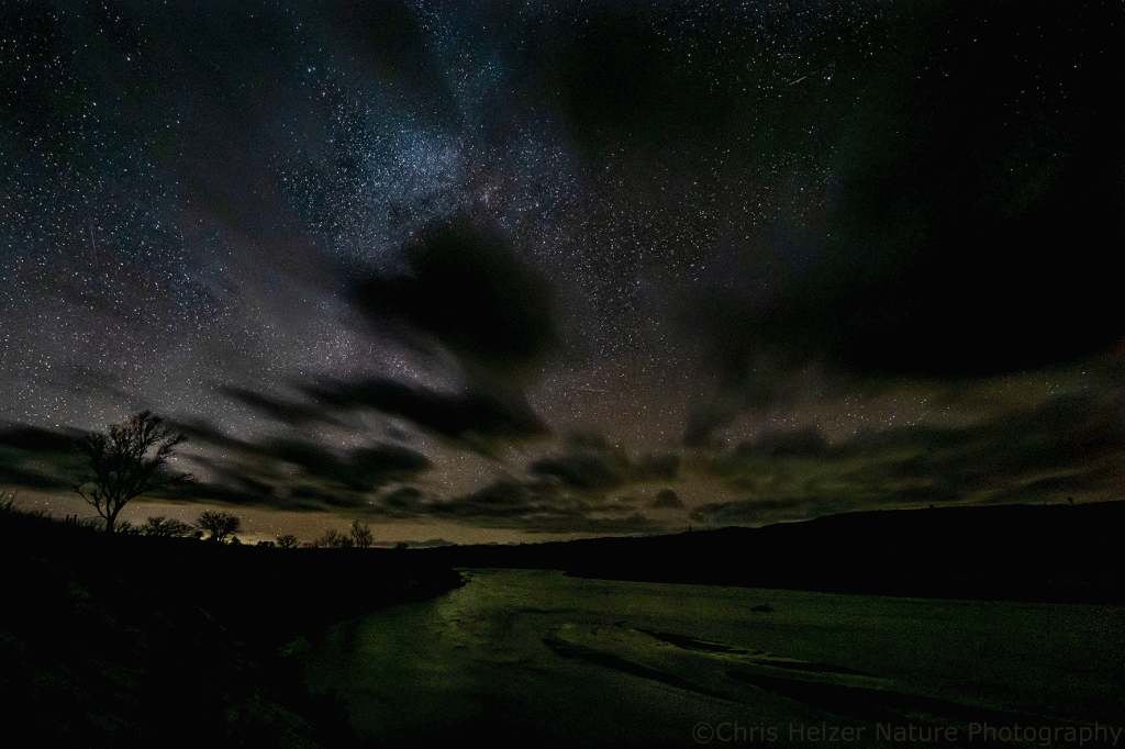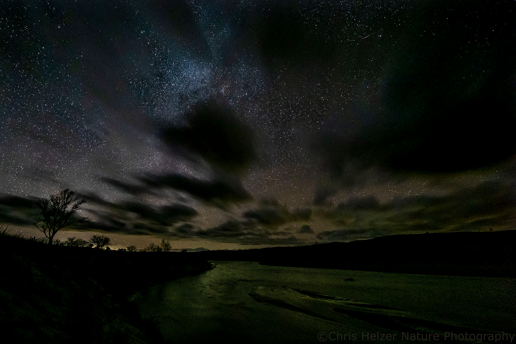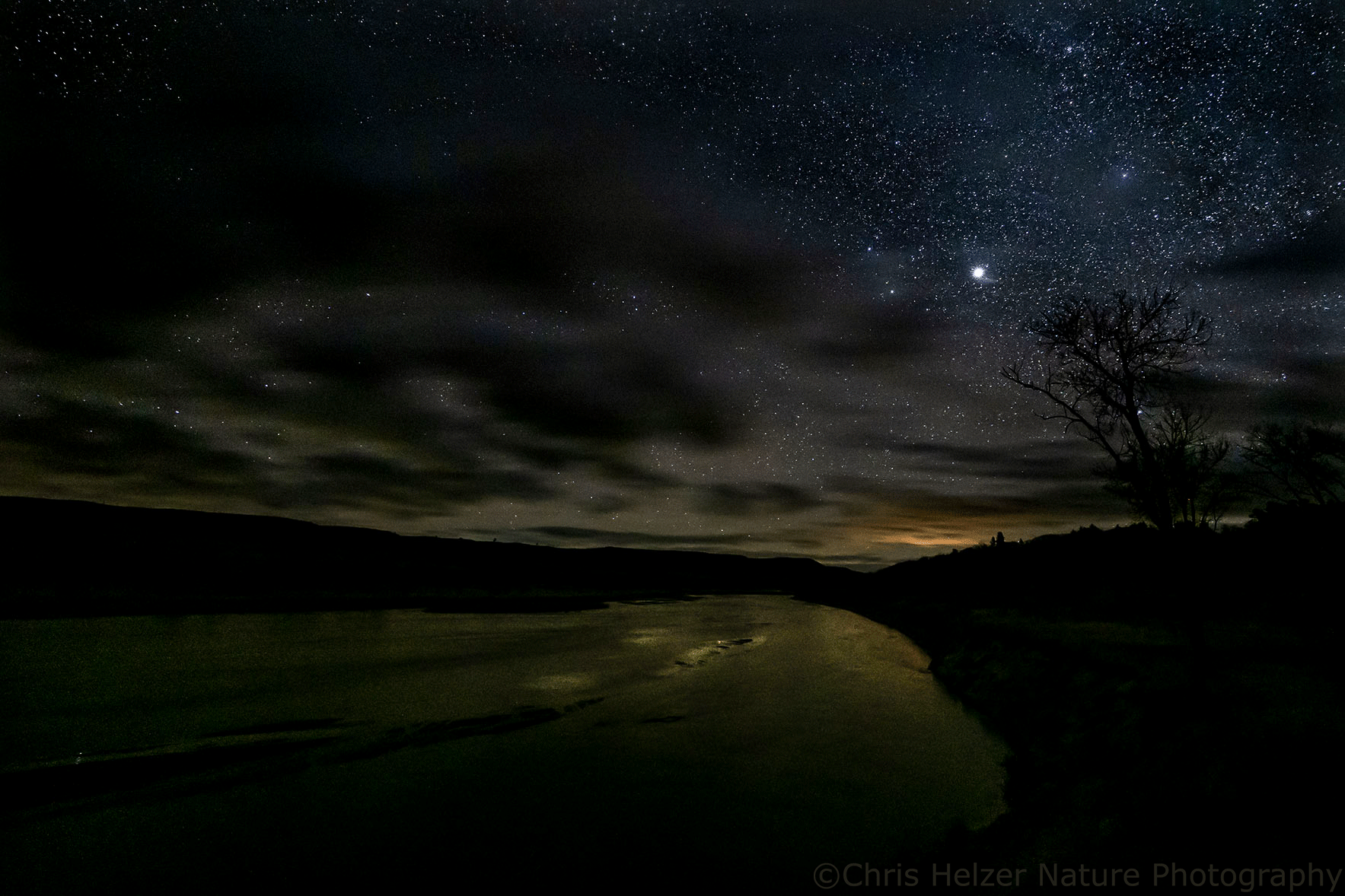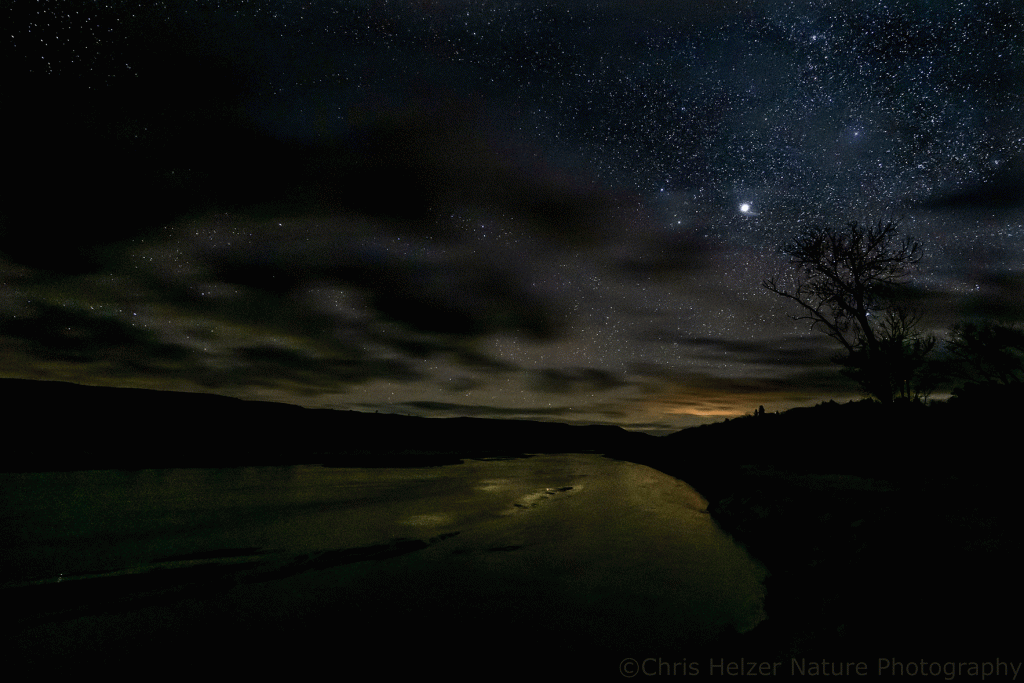 It was fun to practice my star photography, but it was even better to have some quiet time to just stare at the sky and think about the universe. The sound of the river gooshing past me, a lone screech owl, and periodic conversations among distant Canada geese were all that broke the silence of the night. The time went by quickly.