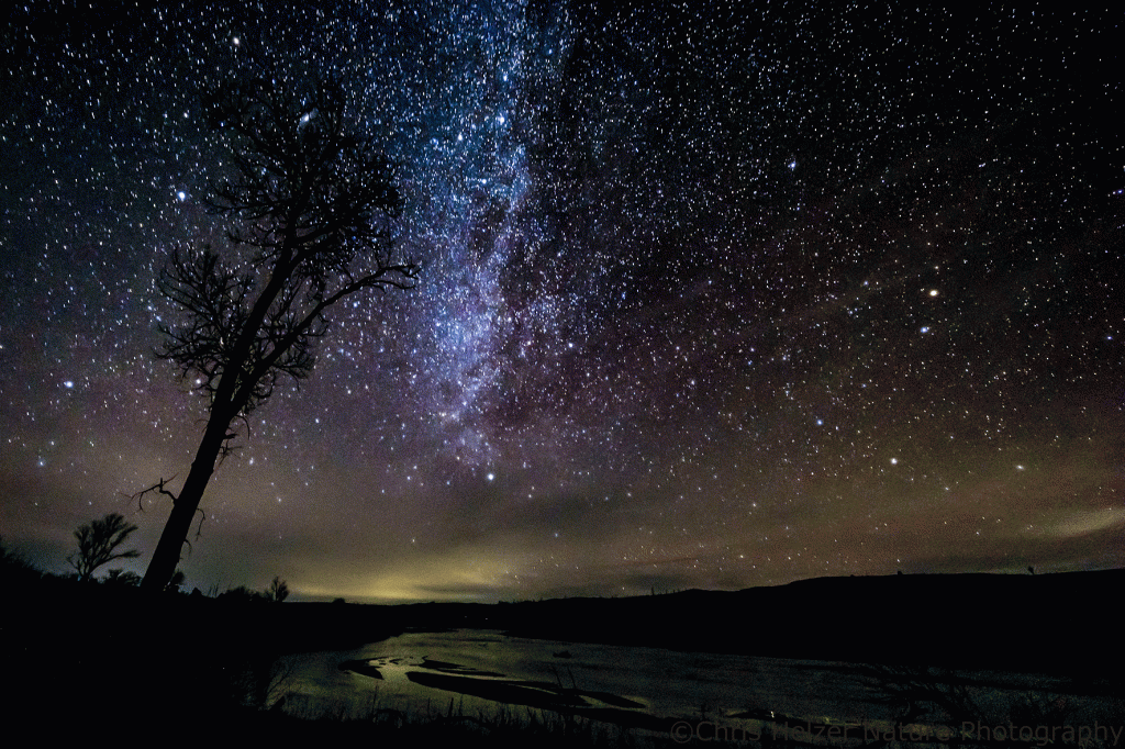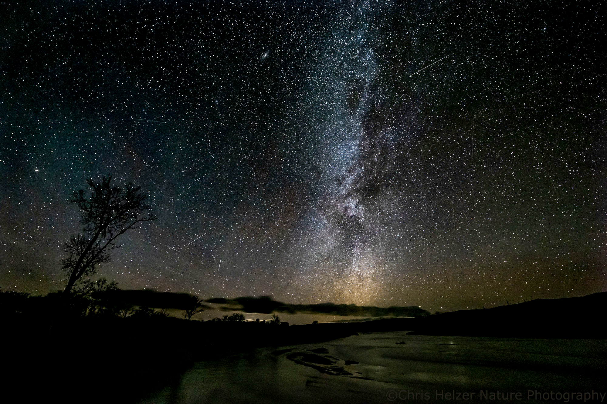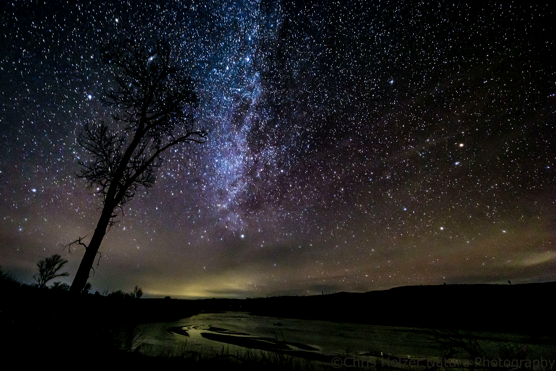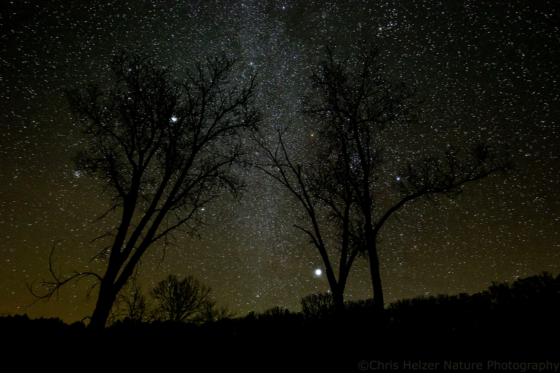 It was fun to practice my star photography, but it was even better to have some quiet time to just stare at the sky and think about the universe. The sound of the river gooshing past me, a lone screech owl, and periodic conversations among distant Canada geese were all that broke the silence of the night. The time went by quickly.