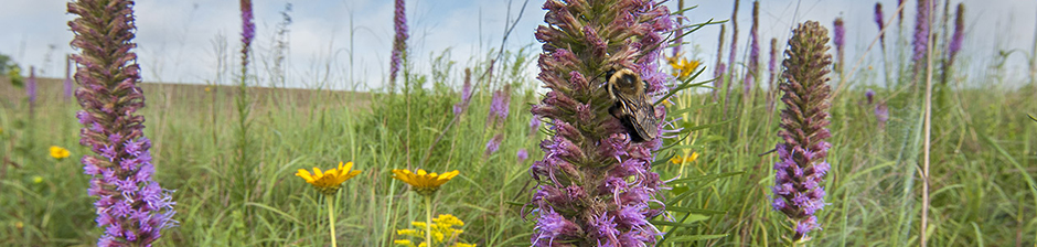 ENPO160803_D006 – blogheader Published April 22, 2017 at 940 × 224 in ENPO160803_D006 – blogheader Bumblebee on tall gayfeather (Liatris lancifolia). Audubon Nebraska’s Spring Creek Prairie. Denton, Nebraska.