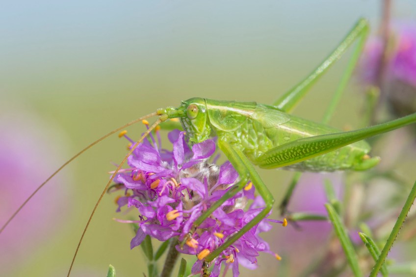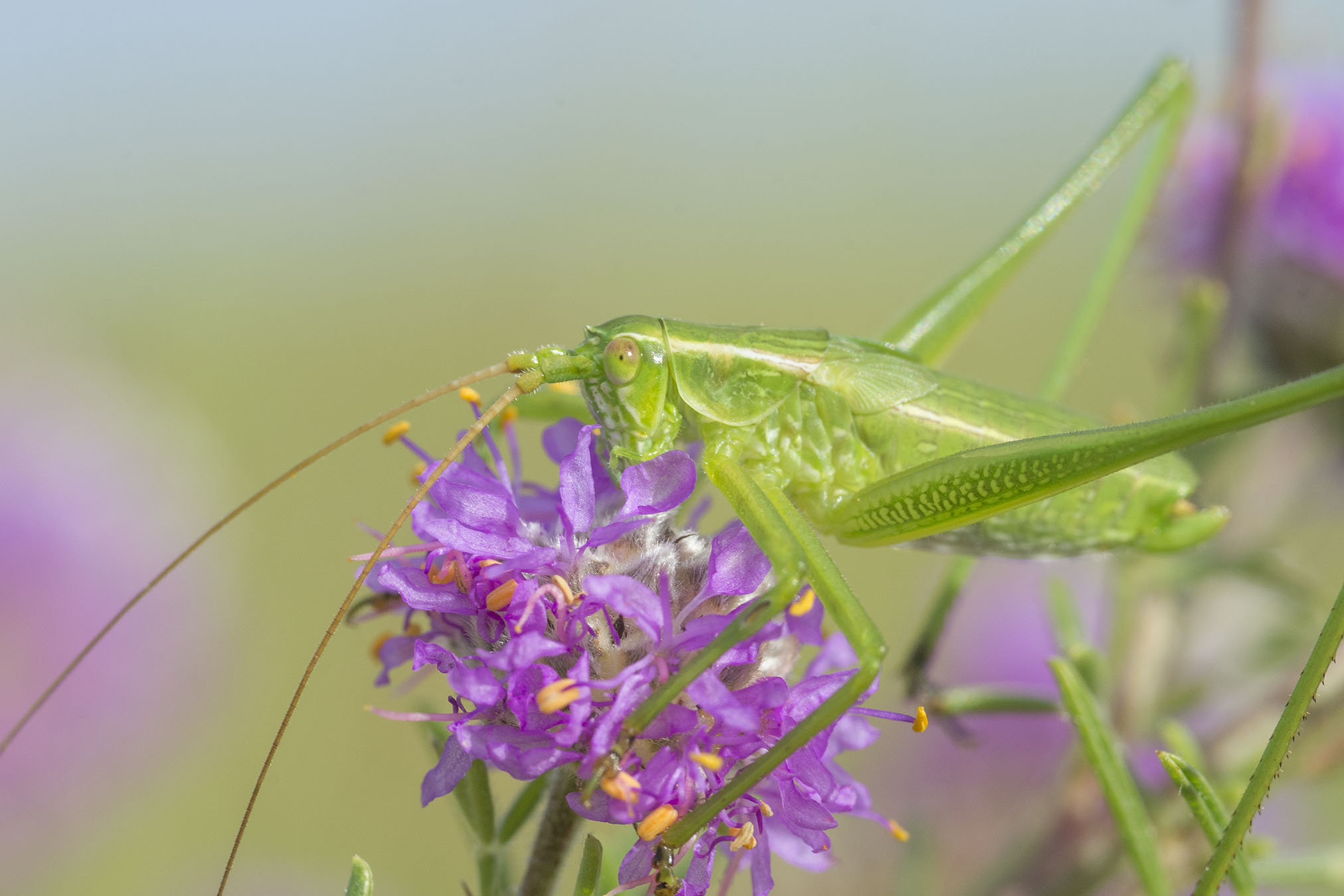ENPO170703_D025 Published December 27, 2018 at 2024 × 1350 in ENPO170703_D025 Katydid on purple prairie clover (Dalea purpurea). Helzer family prairie near Stockham, Nebraska.