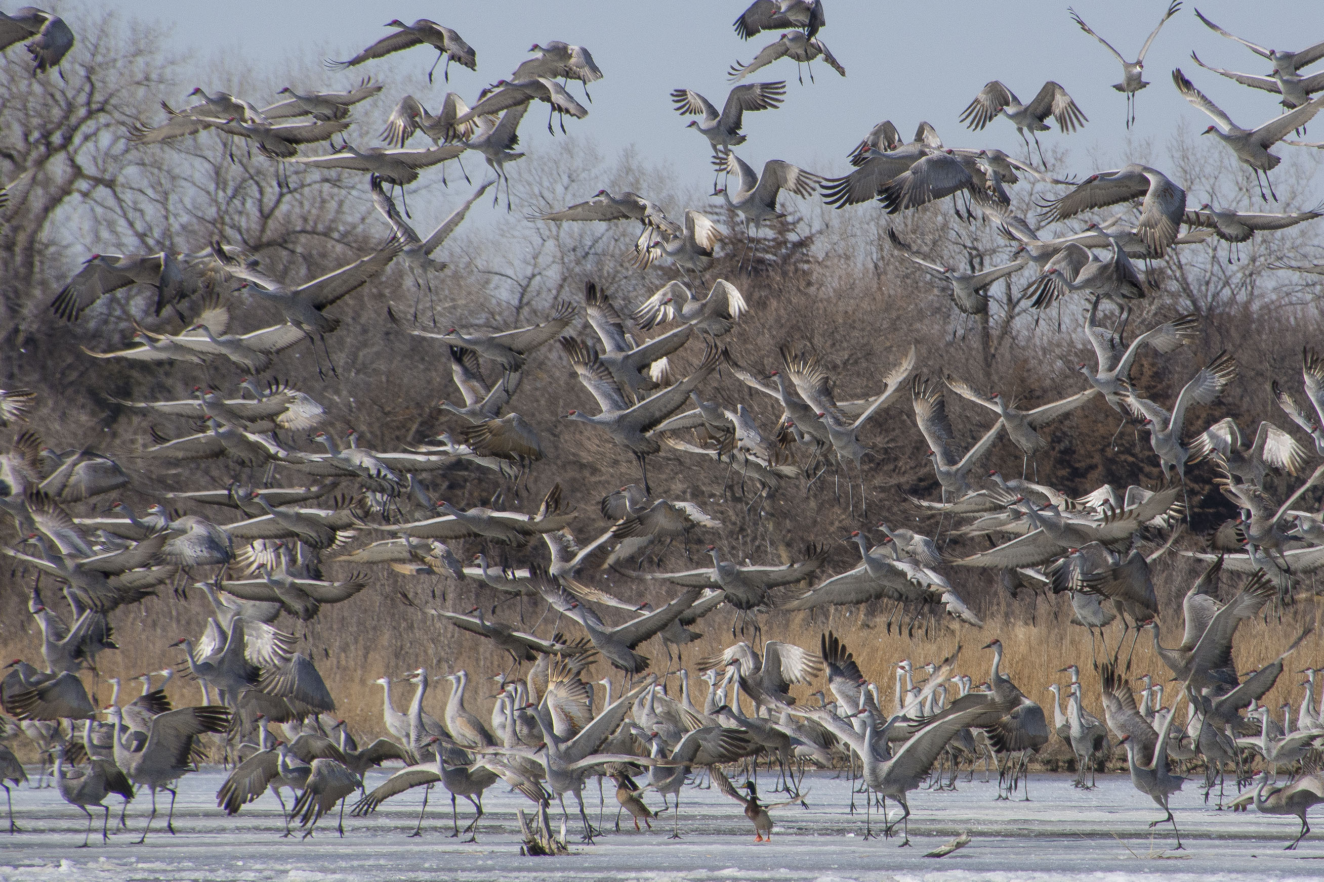 ENPO180227_D004 Published December 16, 2018 at 2616 × 1744 in ENPO180227_D004 Sandhill cranes on a mostly frozen Central Platte River north of The Nature Conservancy’s Studnicka Tract. Nebraska.