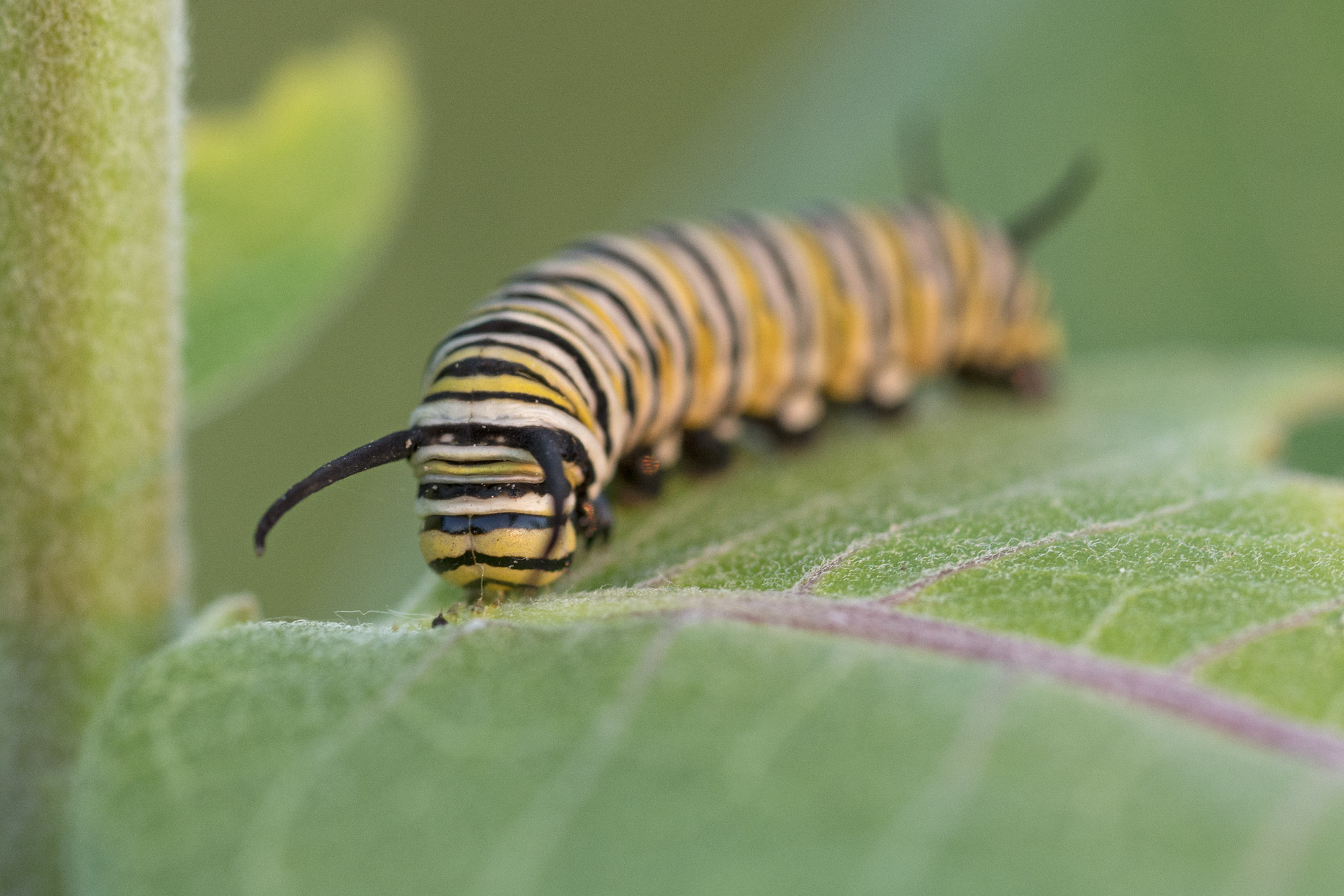 ENPO180709_D031 Published December 27, 2018 at 1996 × 1331 in ENPO180709_D031 Monarch butterfly caterpillar on common milkweed. Helzer family prairie, near Stockham, Nebraska.