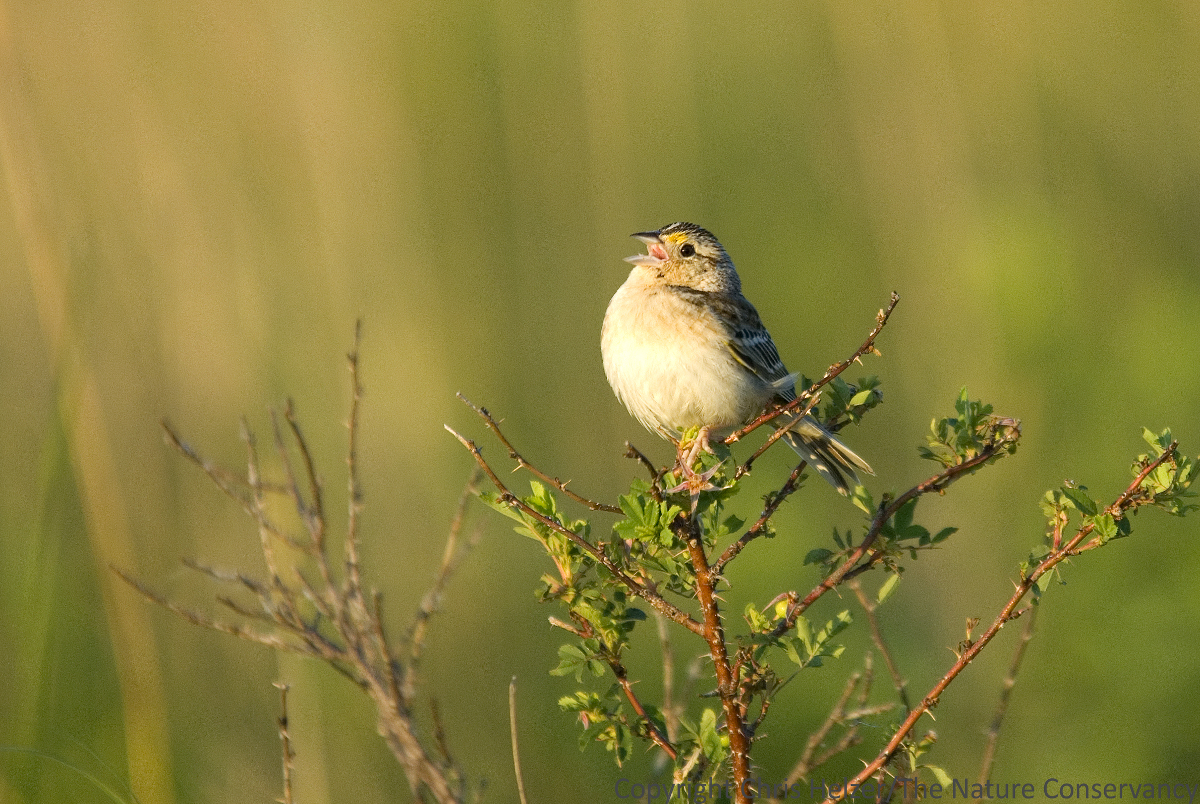 Published March 27, 2014 at 2379 × 1593 in Grasshopper sparrow on wild rose. The Nature Conservancy’s Platte River Prairies, Nebraska