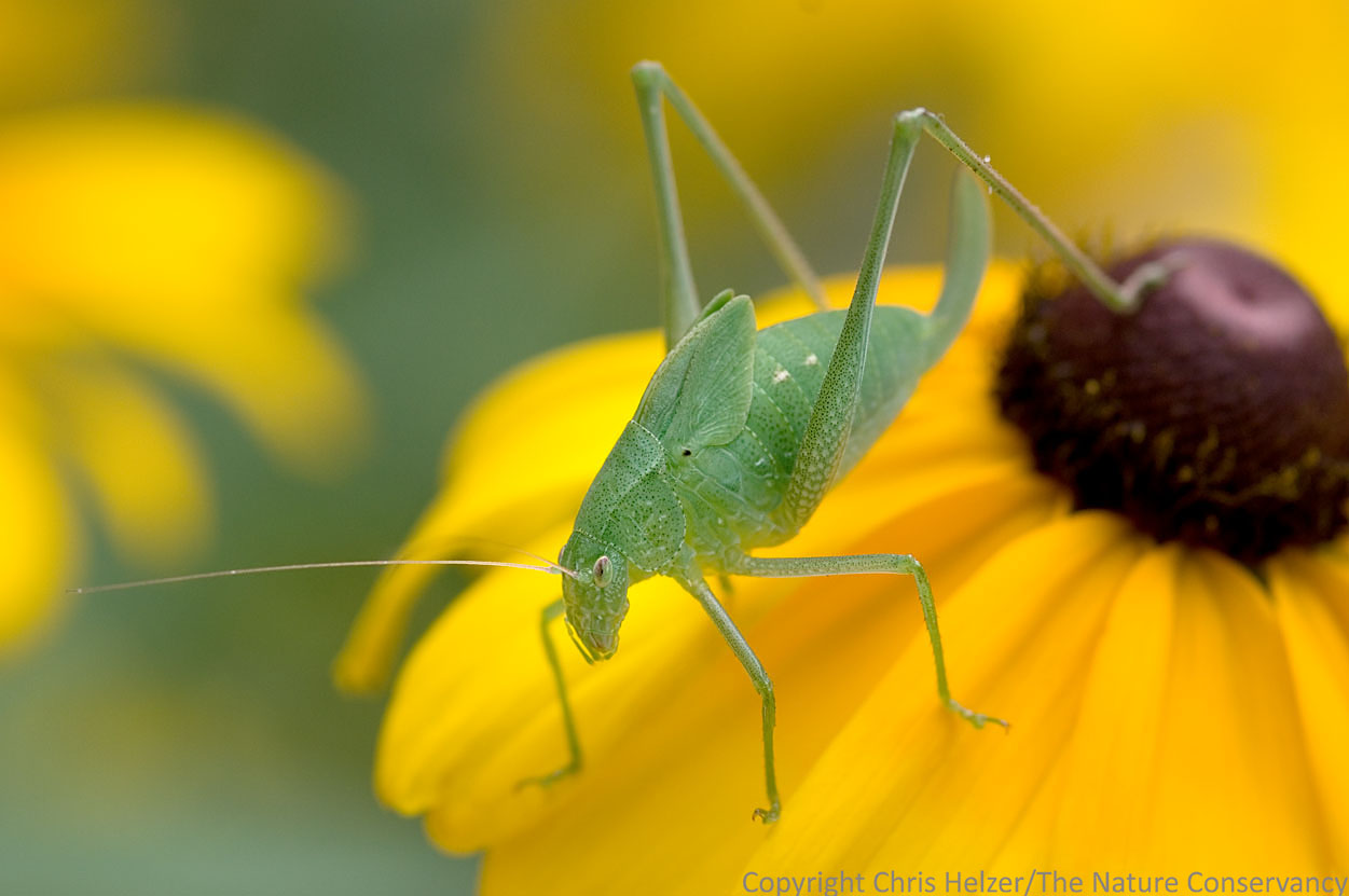 Katydid nymph on black-eyed susan. Aurora, Nebraska.