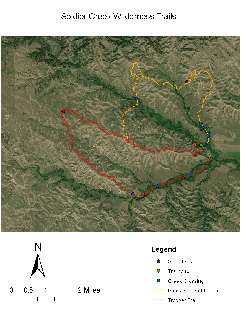 2) 2.5 miles to intersection and 5.1 miles to windmill stock tank – dominated by rolling hills