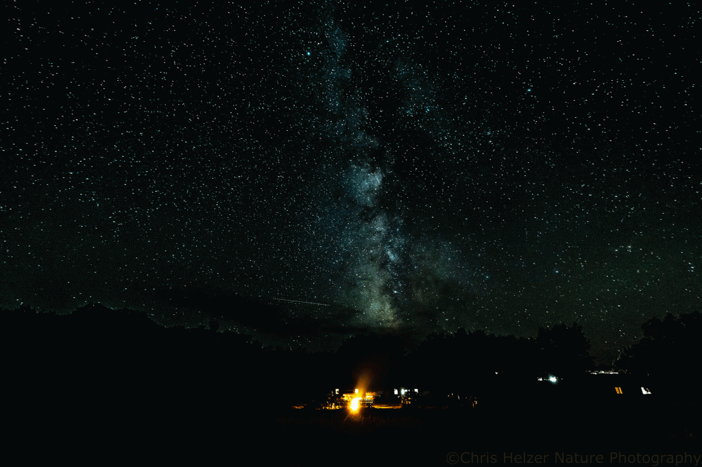 The first two photos shown here were taken at The Nature Conservancy’s Niobrara Valley Preserve back in September. We were hosting some TNC members for an event and enjoyed an evening campfire as the stars started to appear above us. The milky way put on a great show, which was visible despite the bright light from the fire and some of the nearby buildings.