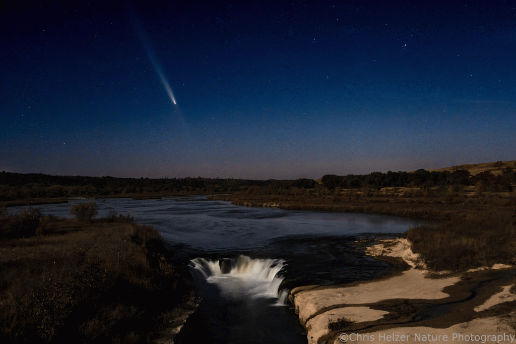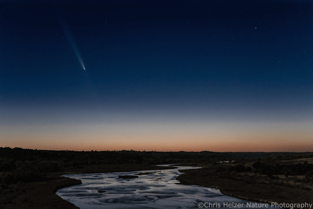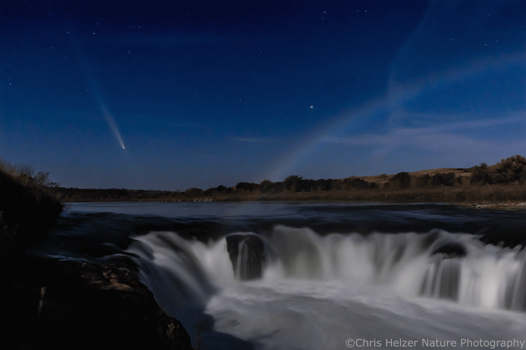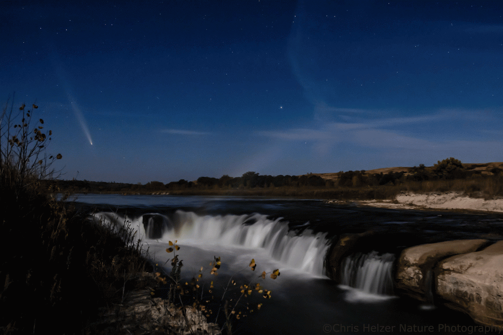 I was fortunate to be back up at the Niobrara Valley Preserve the week the comet was most visible (I was helping with a bison roundup). I’d read up on where to see the comet in the sky and visualized what the scene might look like from my favorite vantage point near the Preserve’s headquarters. Sure enough, the first evening I was there, the sky was clear and the comet was right where I’d hoped.