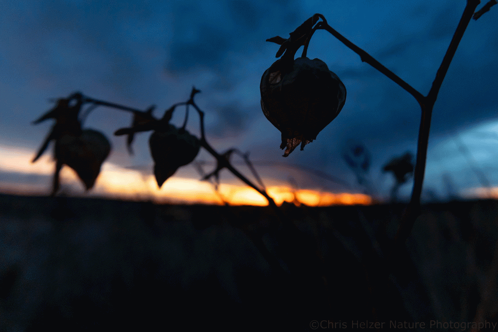 Just before sunrise on Monday morning, I was back up at my favorite vantage point at the Niobrara Valley Preserve, watching a ribbon of orange light illuminate the horizon and bleed into the dark blue/gray of the clouds above. I spent more than a half hour bouncing around a hillside, changing lenses several times, and lying on the ground in multiple places to get the angles I wanted. There were way too many choices for how to capture the scene and I wanted to take advantage of as many as I could.
