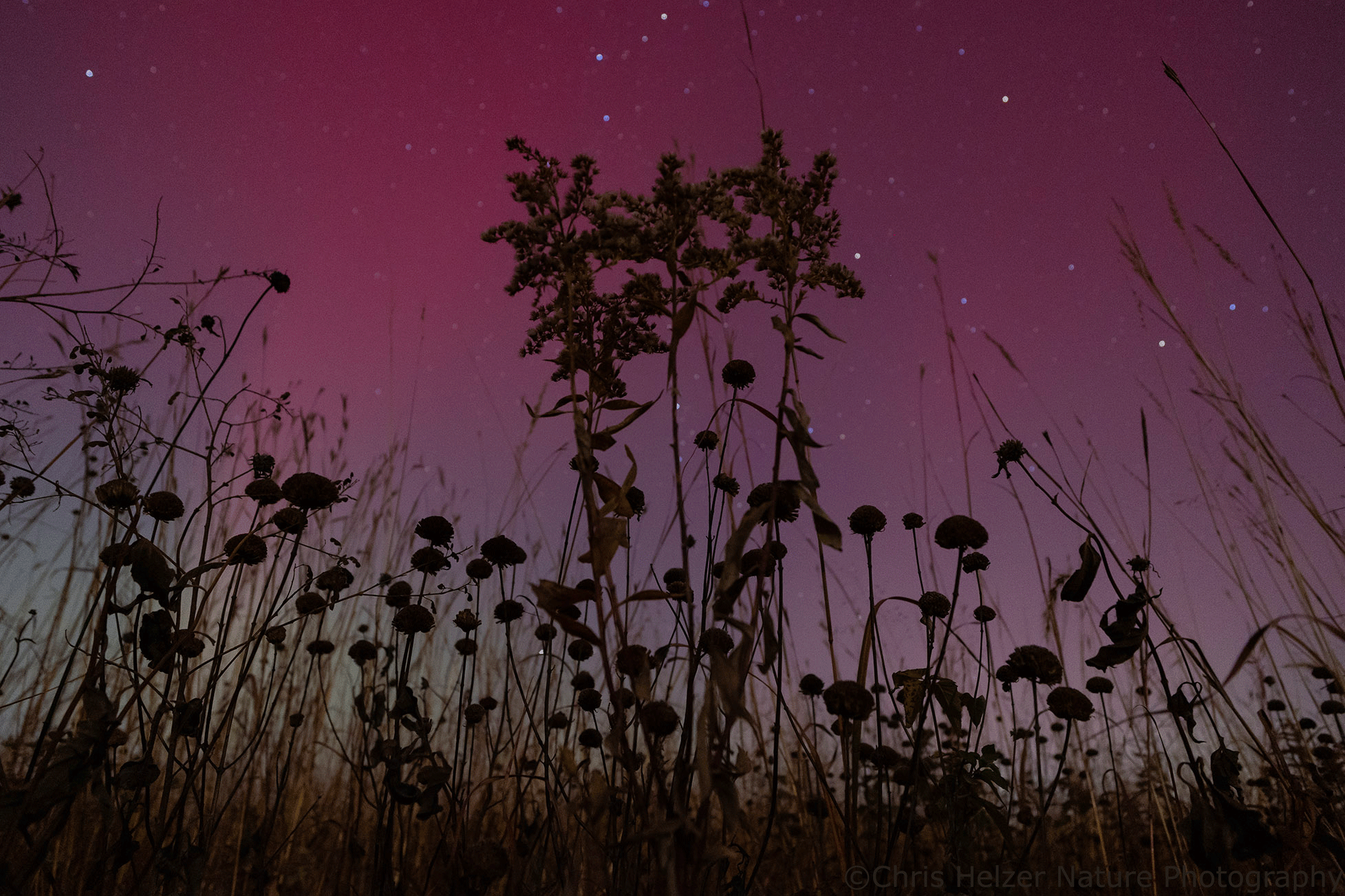 Since it’s pretty rare that we get to see the phenomenon here in central Nebraska, I decided I’d better not waste the opportunity. I drove west to a little prairie and started playing around. Suddenly, the muted purples gave way to a wild show of reds, greens, purples, and more. I no longer felt tired.