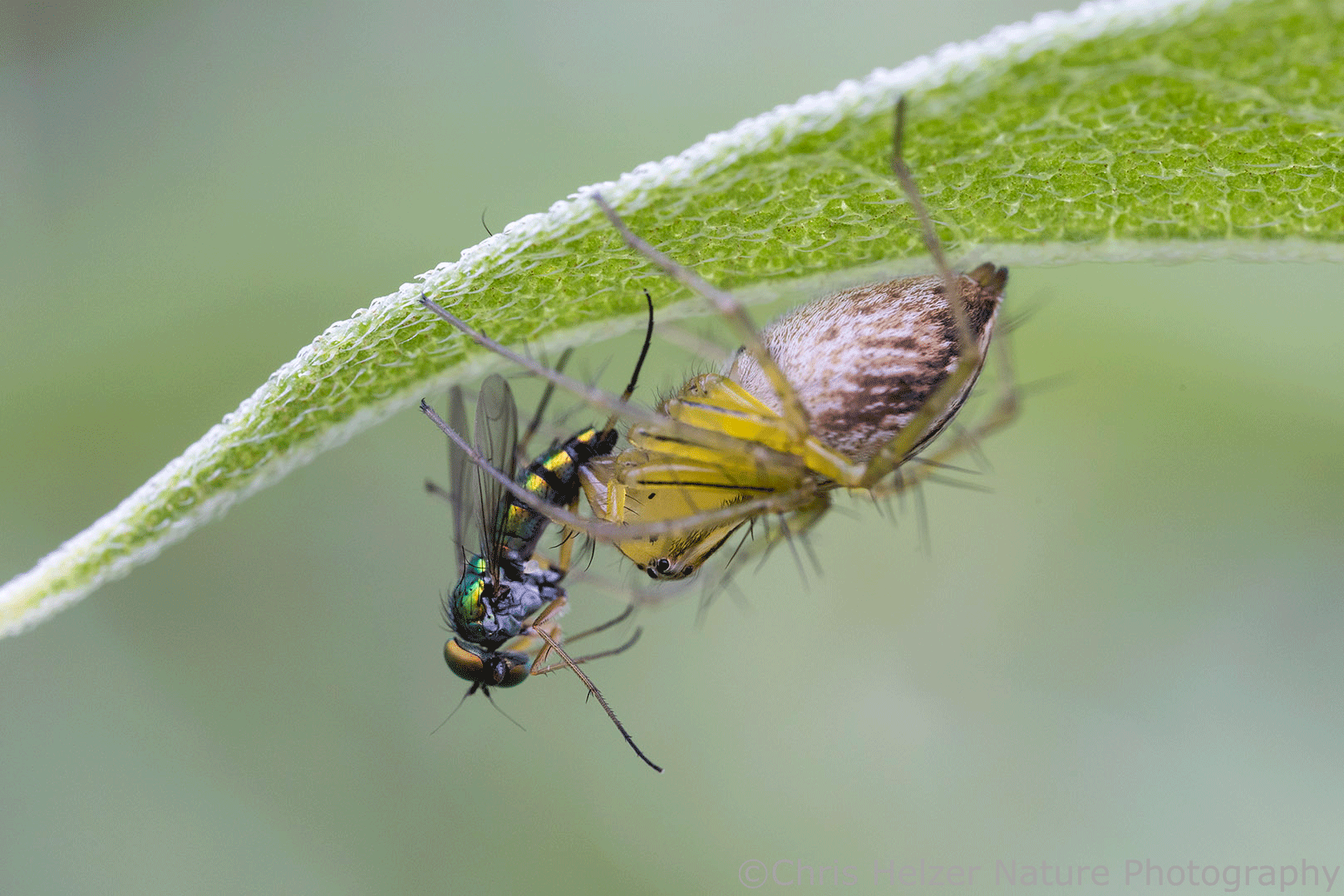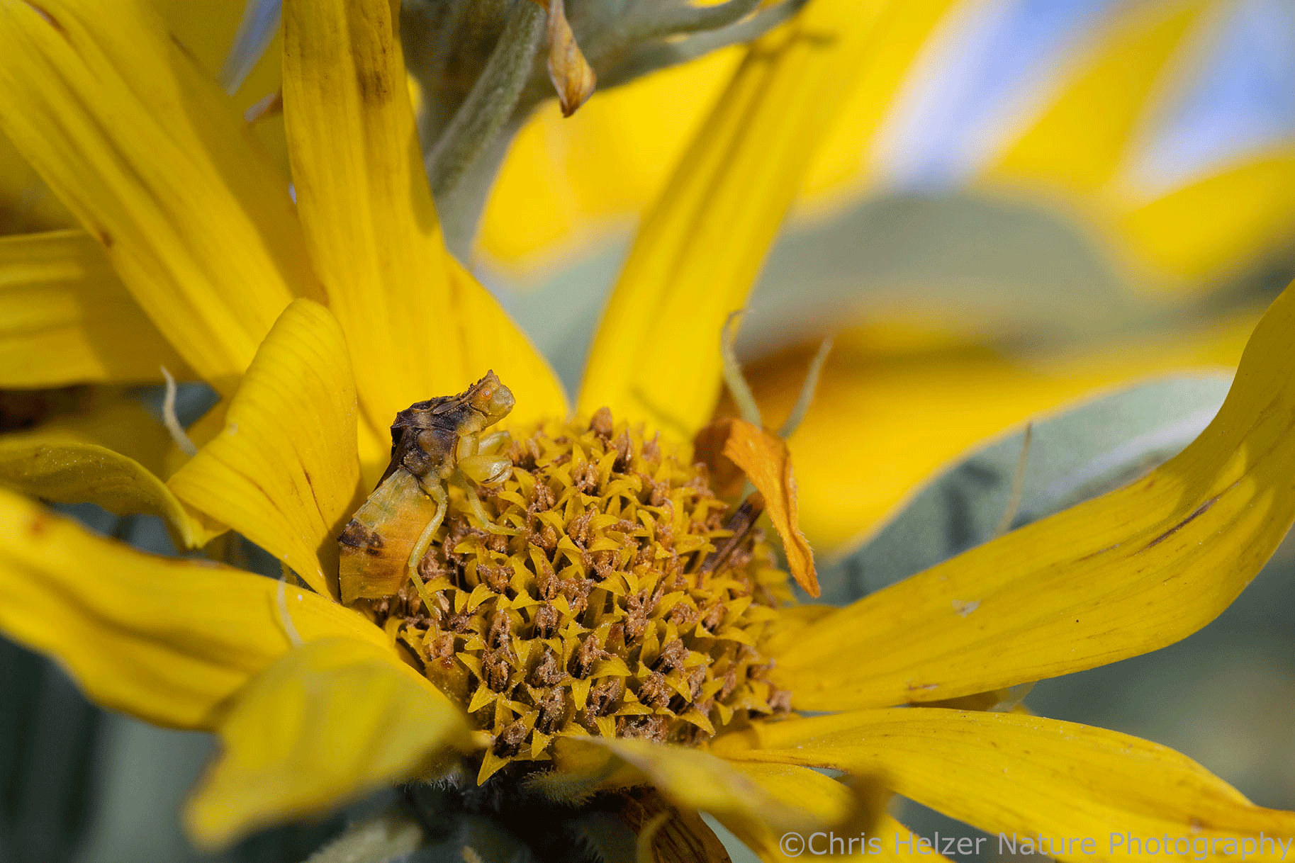 I’ve been a little surprised not to have seen more predatory invertebrates in the plot, given the high numbers of potential prey. Lynx spiders are still hanging about and catching a wide variety of food items. An ambush bug has also shown up and is hunting on the sunflower blossoms.