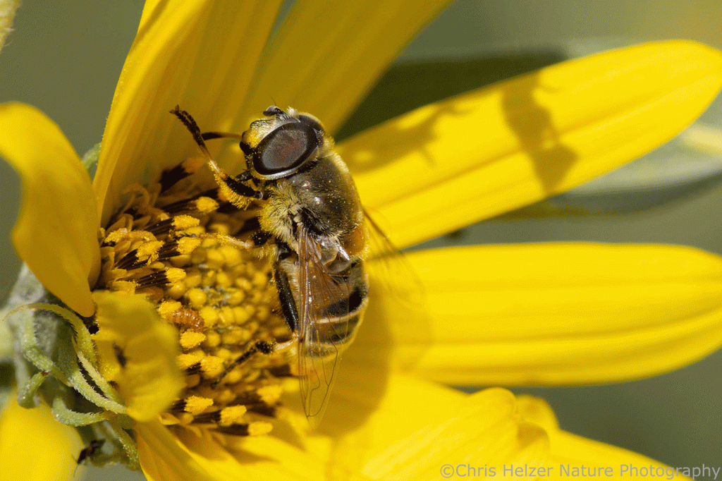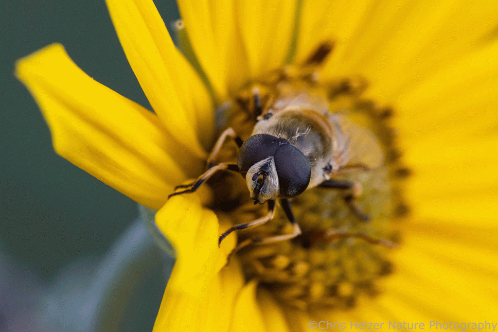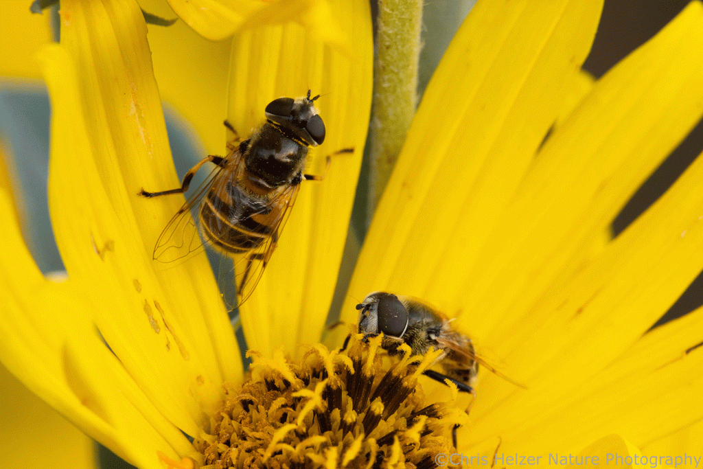 Another group of hover flies is also known as drone flies. I’ve noticed them before because they look a lot like less-fuzzy bees, but hadn’t really paid close attention to the different species. I still struggle to tell some of them apart, so I rely on bugguide experts to help. I’m getting better, but I still guess wrong – sometimes confidently so.