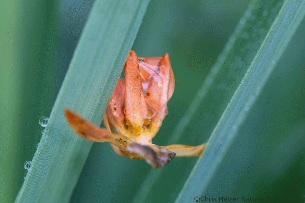 Some of those stories happen within a few seconds, including moments of predation (or attempted predation). Others are more drawn out, including plants that are thriving and others that aren’t – either because of competition from other plants or because they’re being eaten or otherwise affected by animals. I know who the actors are in some of the stories, but others are a mystery, including whomever has been eating the seed heads of heavy sedge (Carex gravida) when I’m not around!