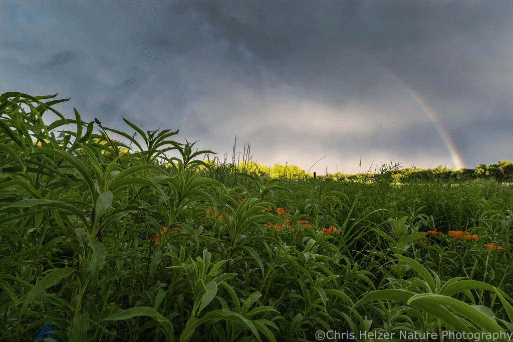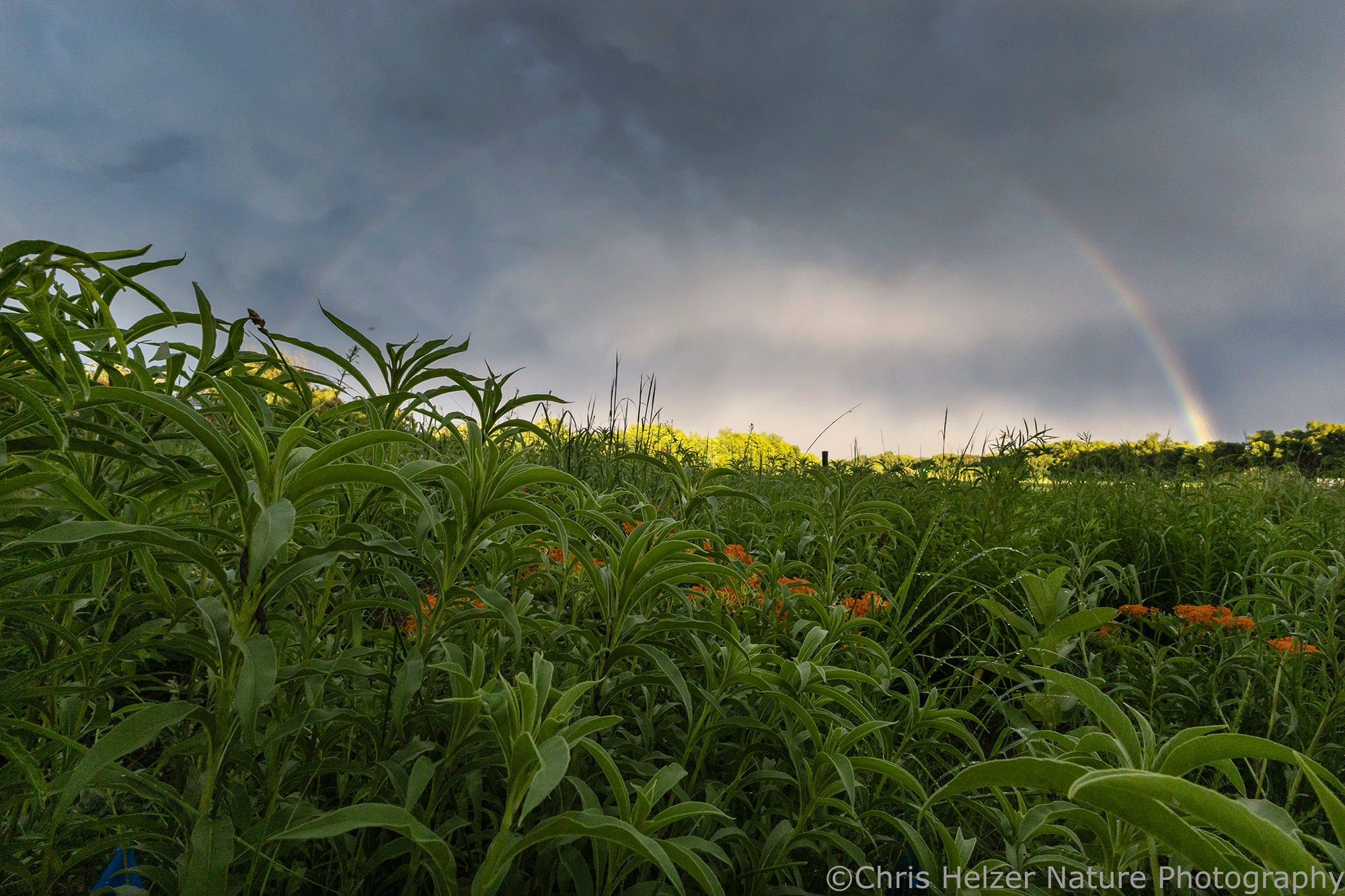 Despite missing the best of the rainbow, the sky still put on a nice show for the next half hour or so, with what looked like ‘mammatus-ish’ clouds hanging overhead and beautiful evening light. Eventually, I went back home, only to return an hour or so later to see if I could get any photos of glowing lightning bugs. I did, but I’m not super happy with them so I’ll try again.
