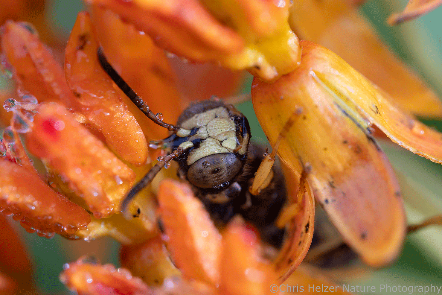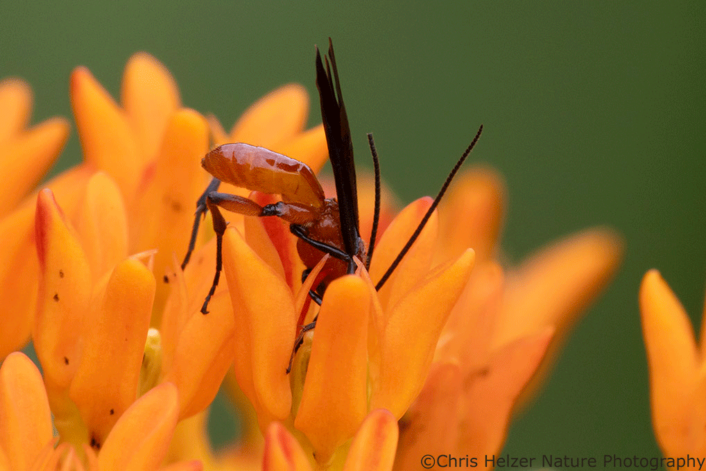 It’s been fun to use the bright orange milkweed flowers as background for other photo subjects. That opportunity is quickly coming to an end now, but it was fun while it lasted!